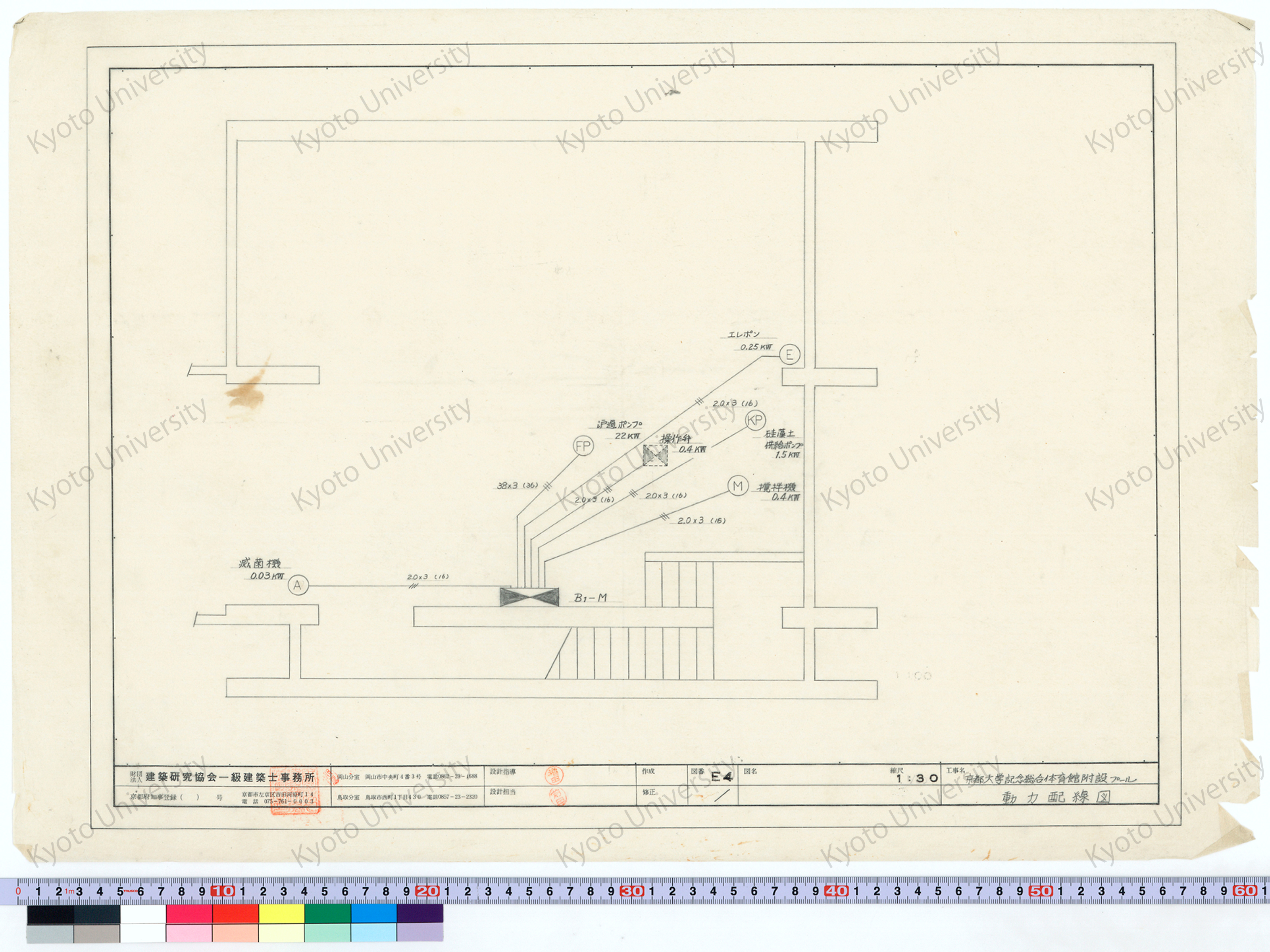 京都大学記念総合体育館附設プール_動力配線図_1:30_E4_増田(設計指導), 前田