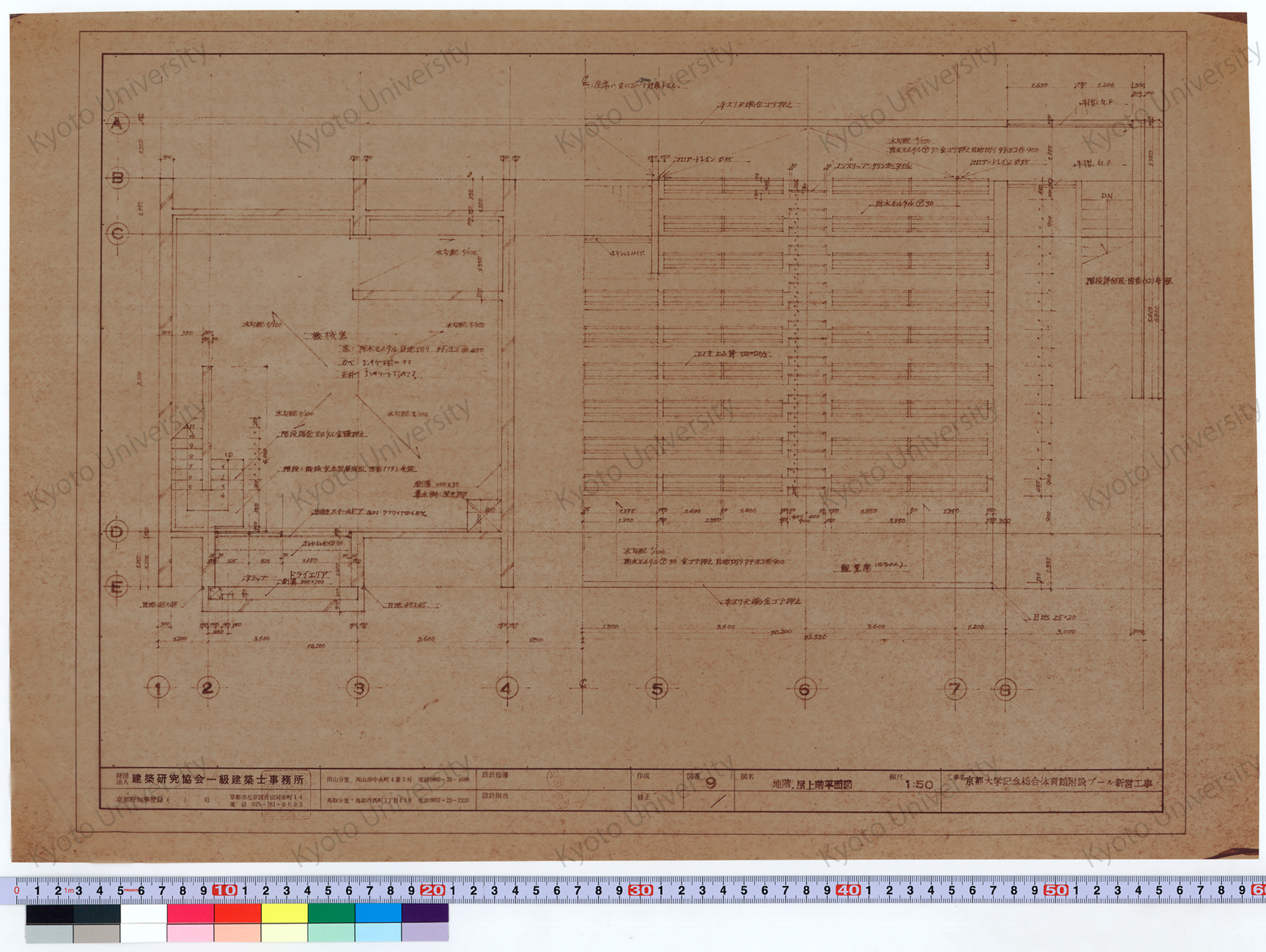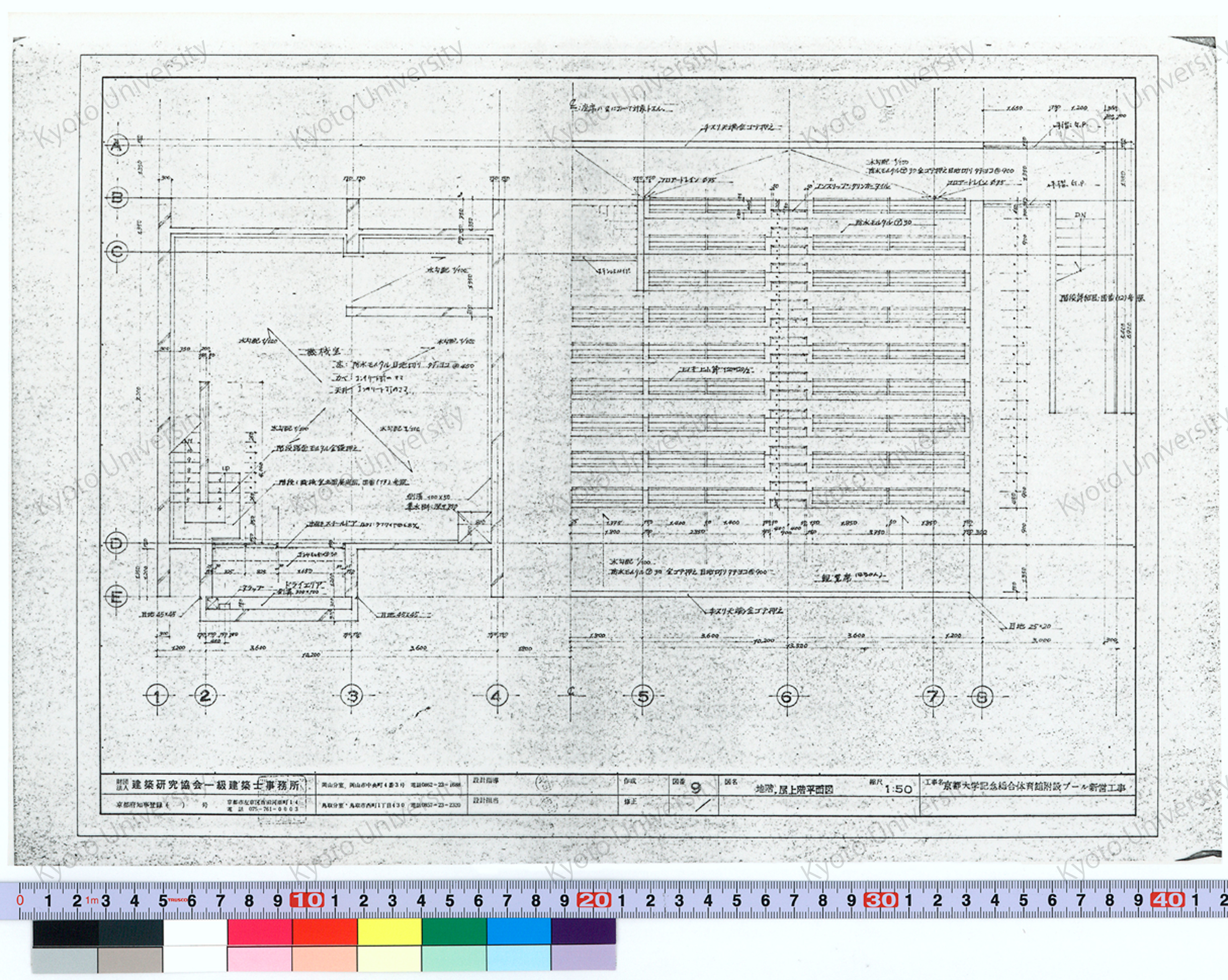 京都大学記念総合体育館附設プール新営工事_地階, 屋上階平面図_1:50_9_増田(設計指導), 前田