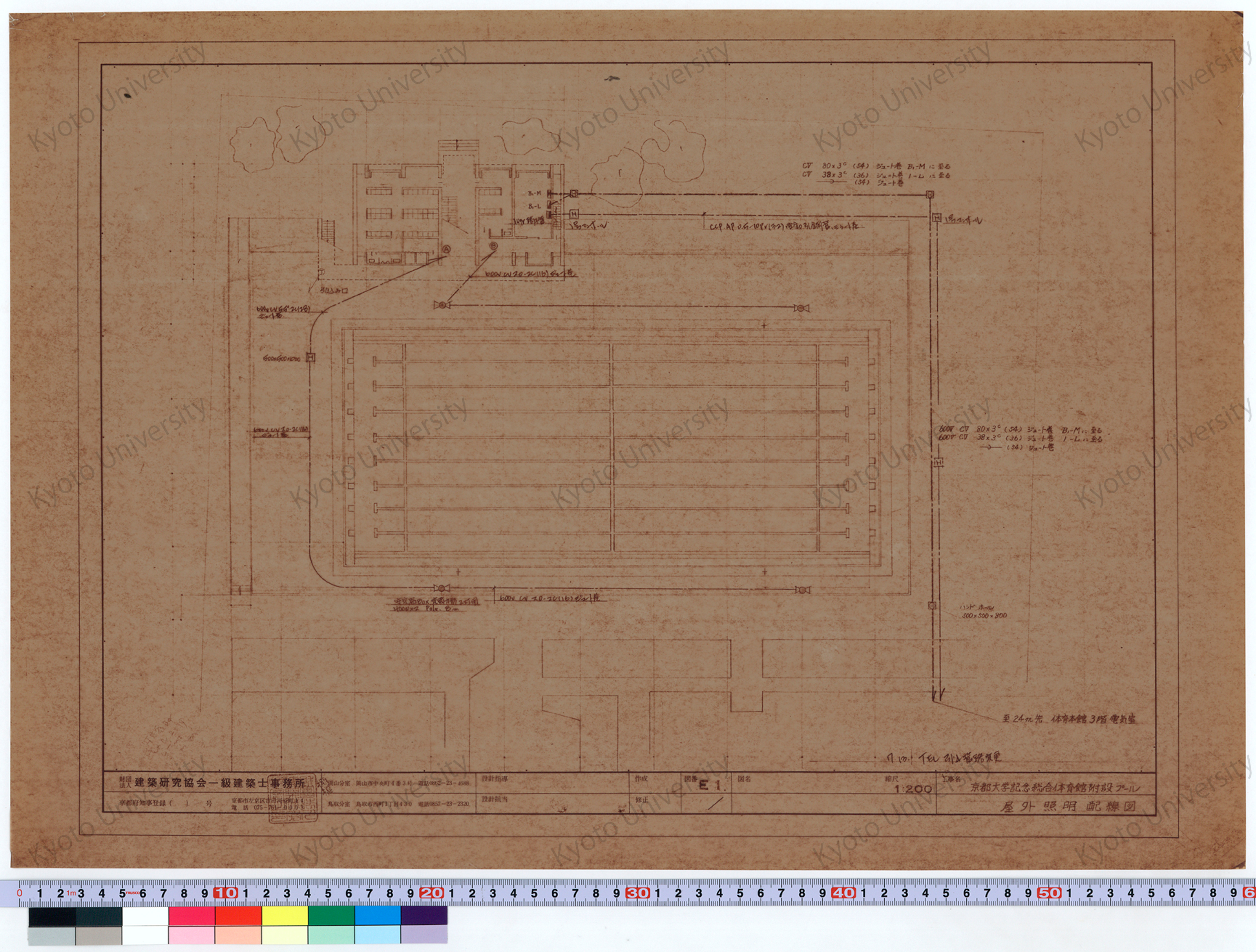 京都大学記念総合体育館附設プール_屋外照明配線図_1:200_E1_増田(設計指導), 前田