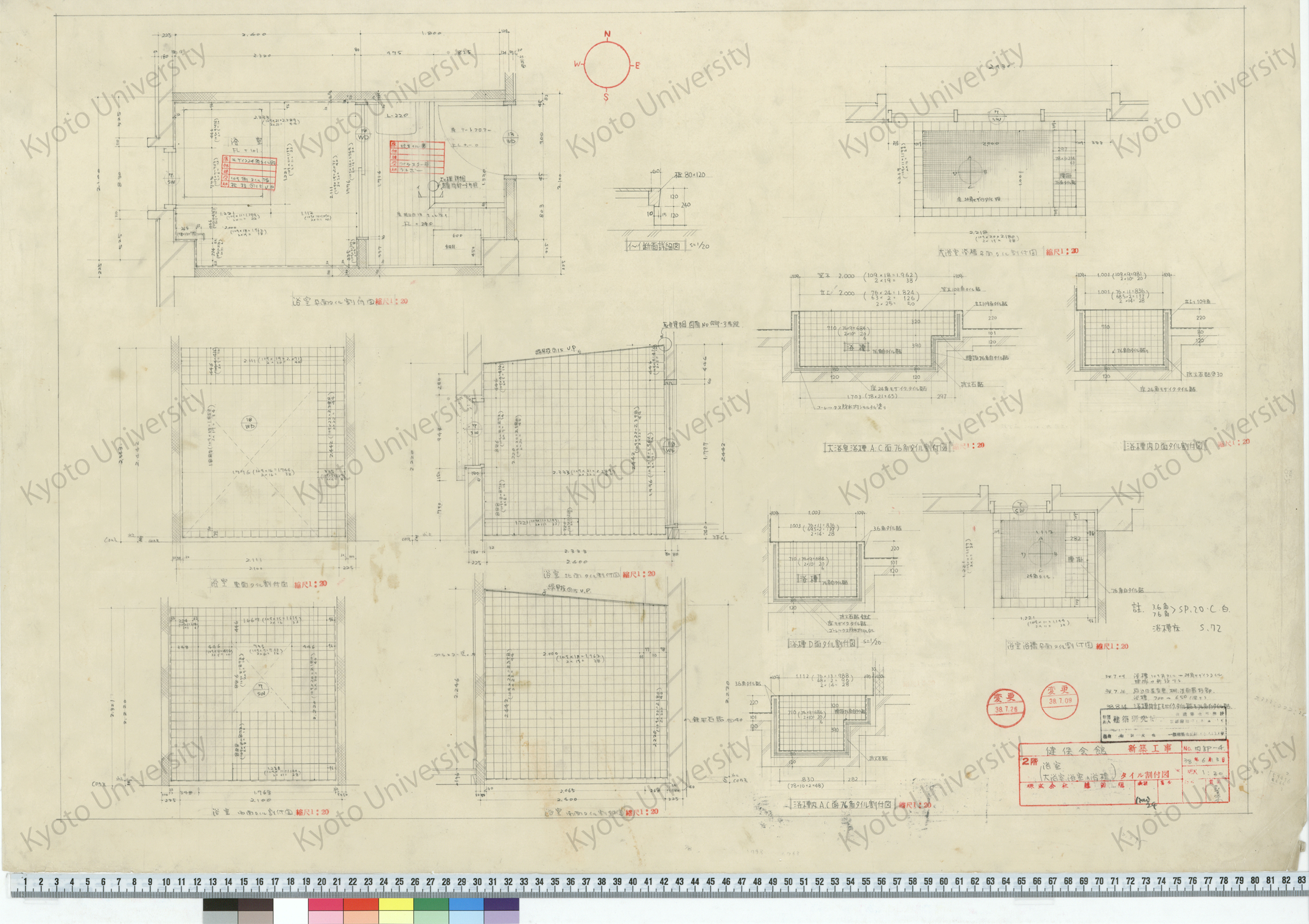 健保会館新築工事_2階大浴室タイル割付図_1:2, 1:20_内部-3_38年6月12日_桑原, 増田友也(担当) (1)