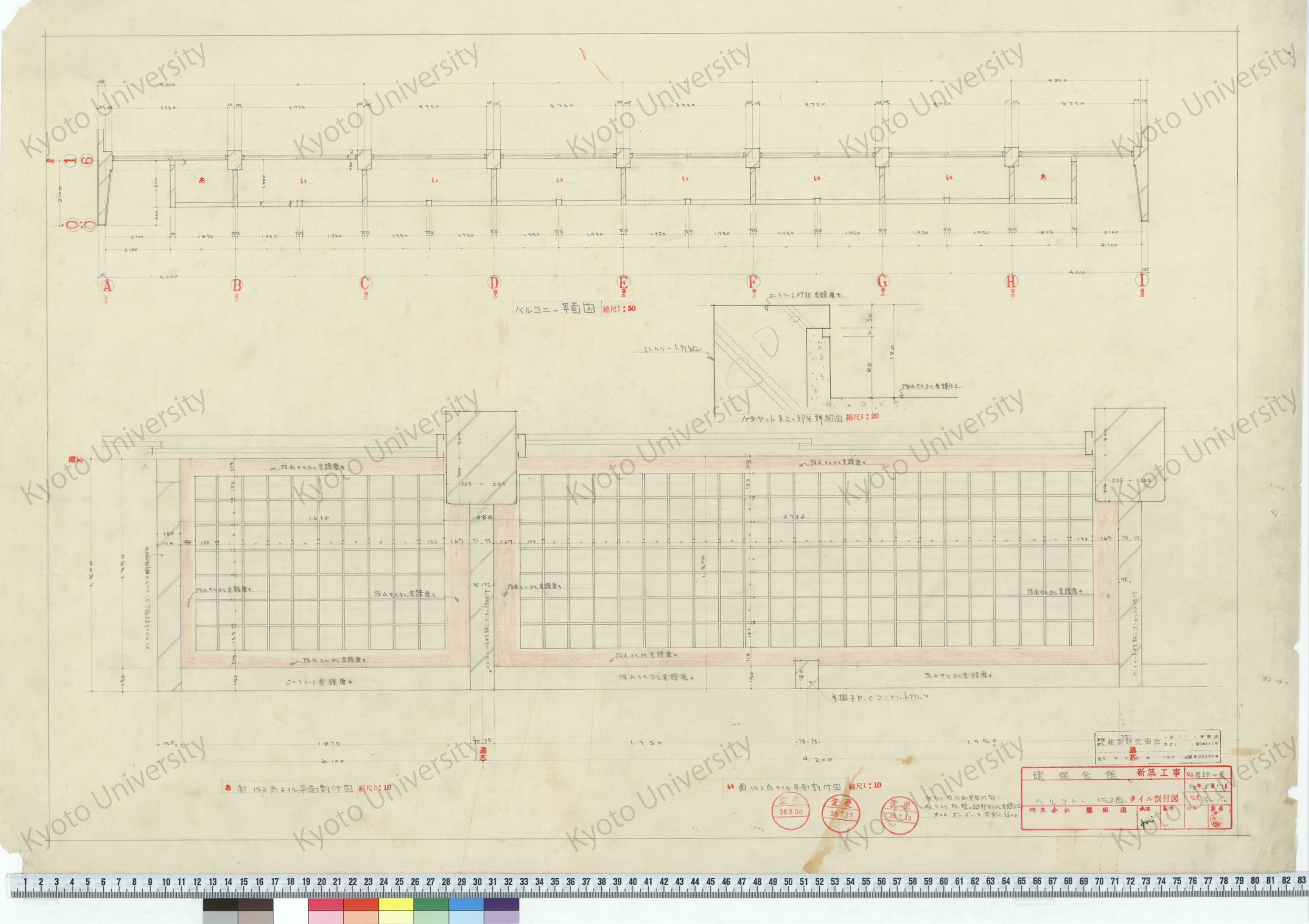 健保会館新築工事_バルコニー152角タイル割付図_1/50, 1/10_内部-8_38年6月17日_桑原, 増田友也(担当) (1)
