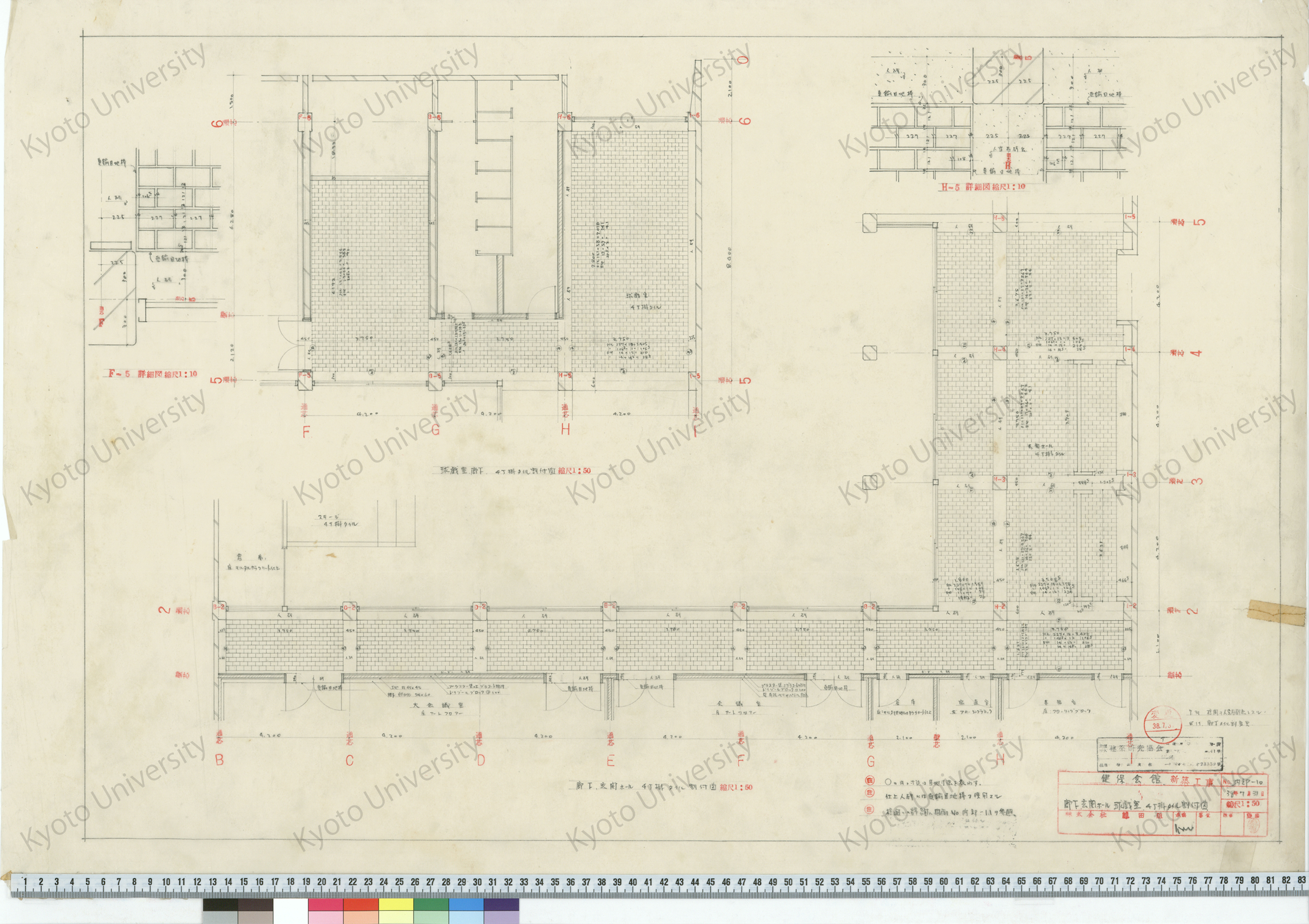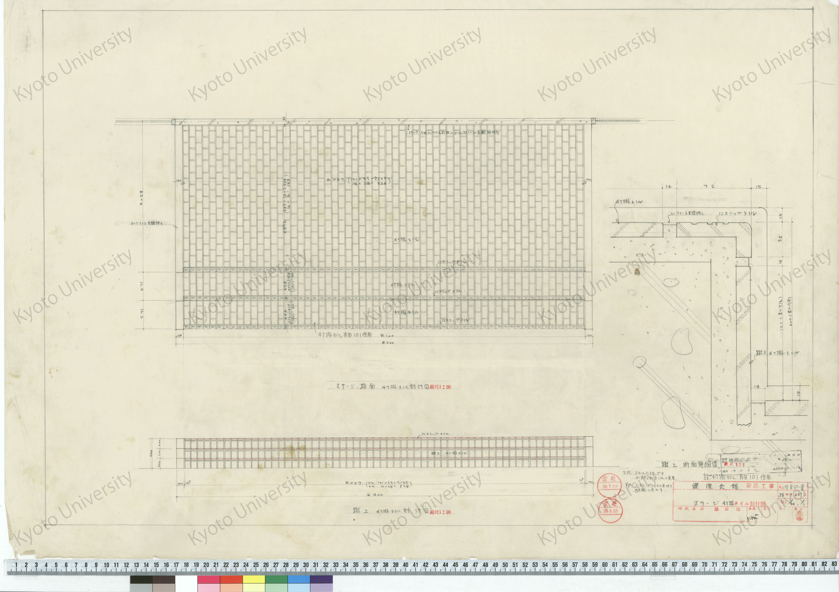 健保会館新築工事_ステージ4丁掛タイル割付図_1/20, 1/1_内部-9_38年7月29日_桑原, 増田友也(担当) (1)