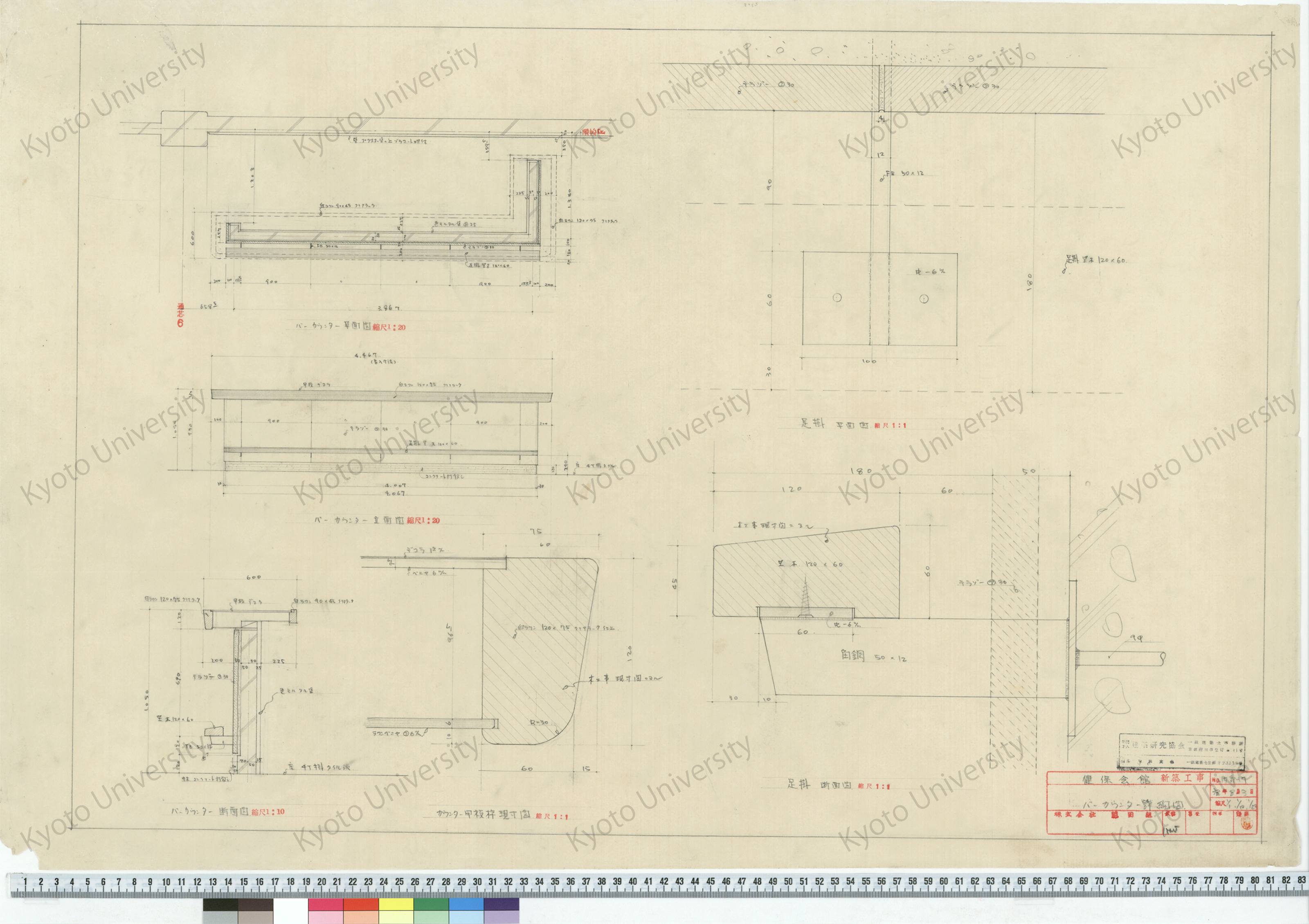 健保会館新築工事_バーカウンター詳細図_1/1, 1/10, 1/20_内部-17_38年8月3日_桑原, 増田友也(担当) (1)