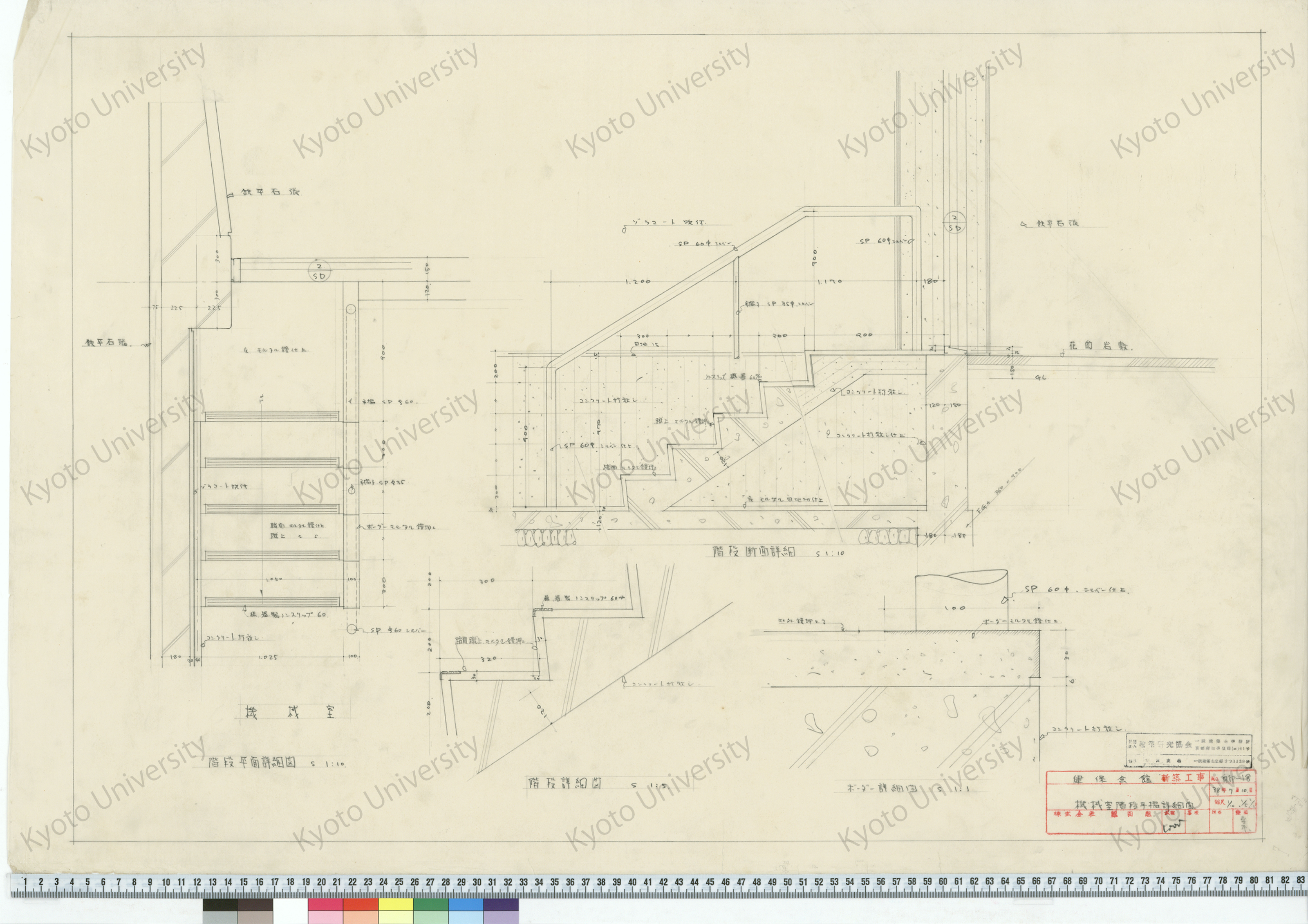健保会館新築工事_機械室階段手摺詳細図_1/10, 1/5, 1/1_内部-18_38年7月10日_桑原, 増田友也(担当) (1)