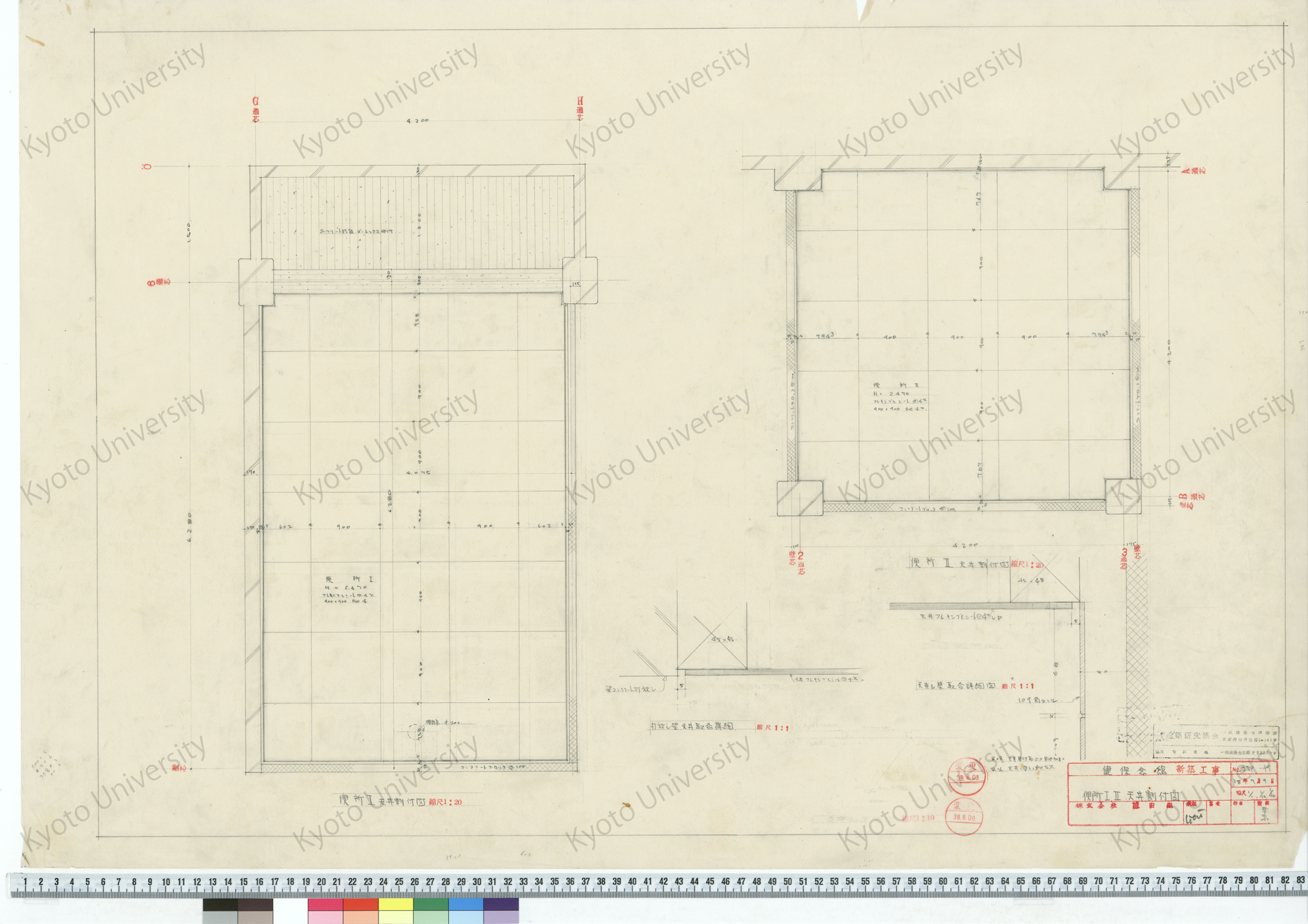 健保会館新築工事_便所I, II天井割付図_1/1, 1/10, 1/20_内部-19_38年7月9日_桑原, 増田友也(担当) (1)