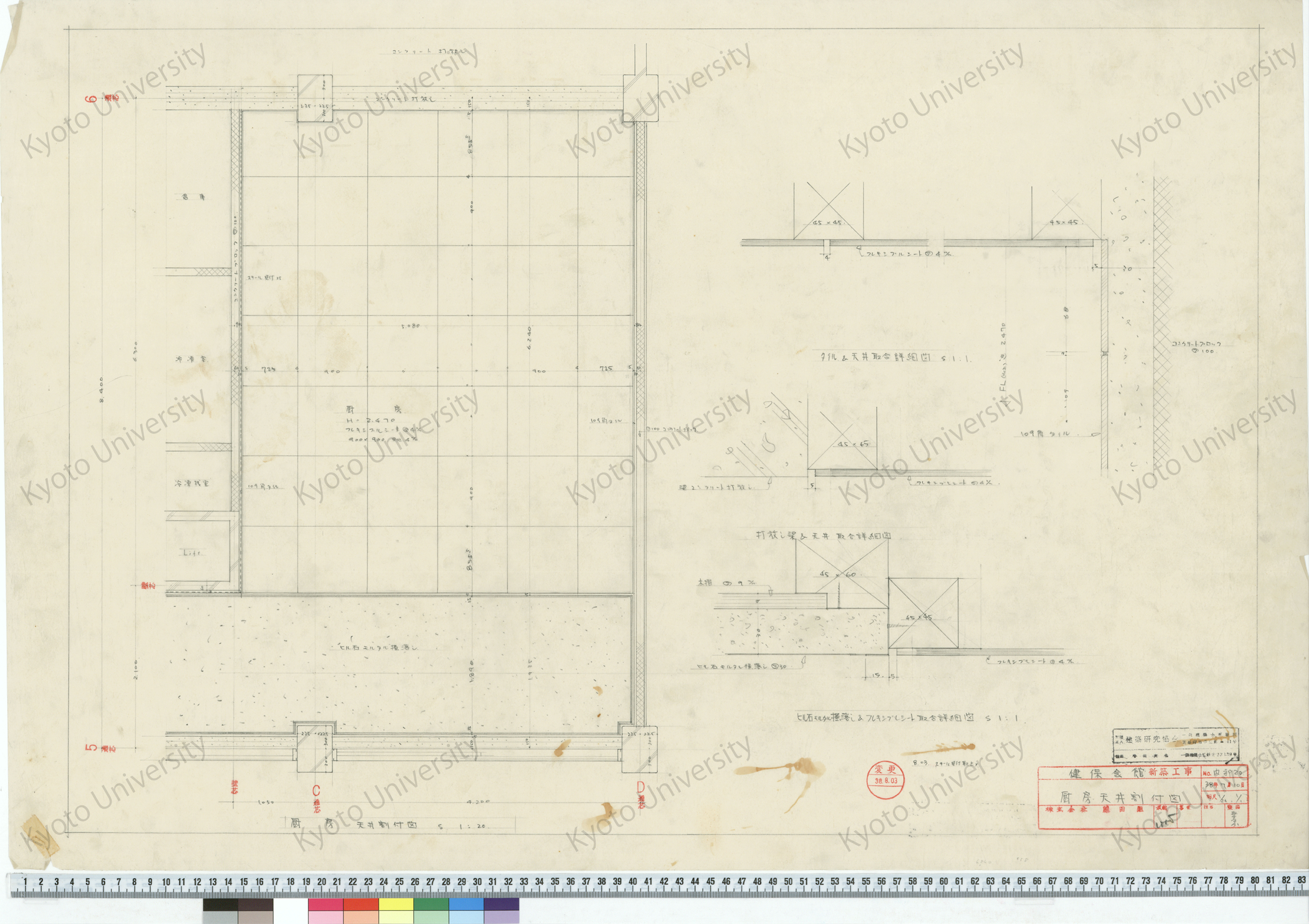 健保会館新築工事_厨房天井割付図_1/20, 1/1_内部20_38年7月10日_桑原, 増田友也(担当) (1)