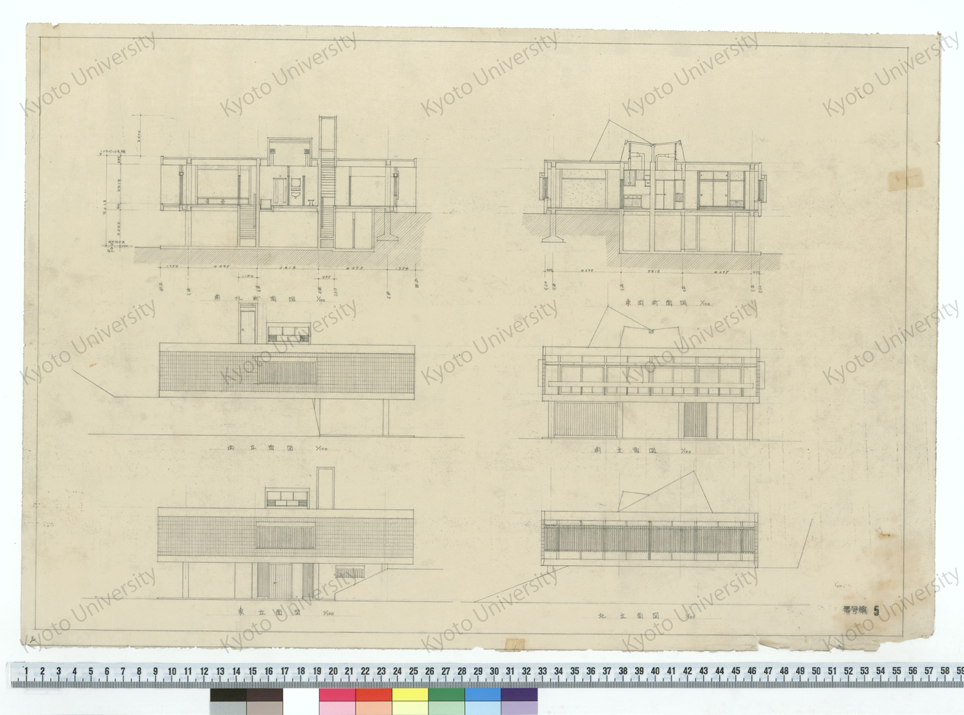 南北断面図_1/100_東西断面図_1/100_西立面図_1/100_南立面図_1/100_東立面図_1/100_北立面図_1/100_番号第5