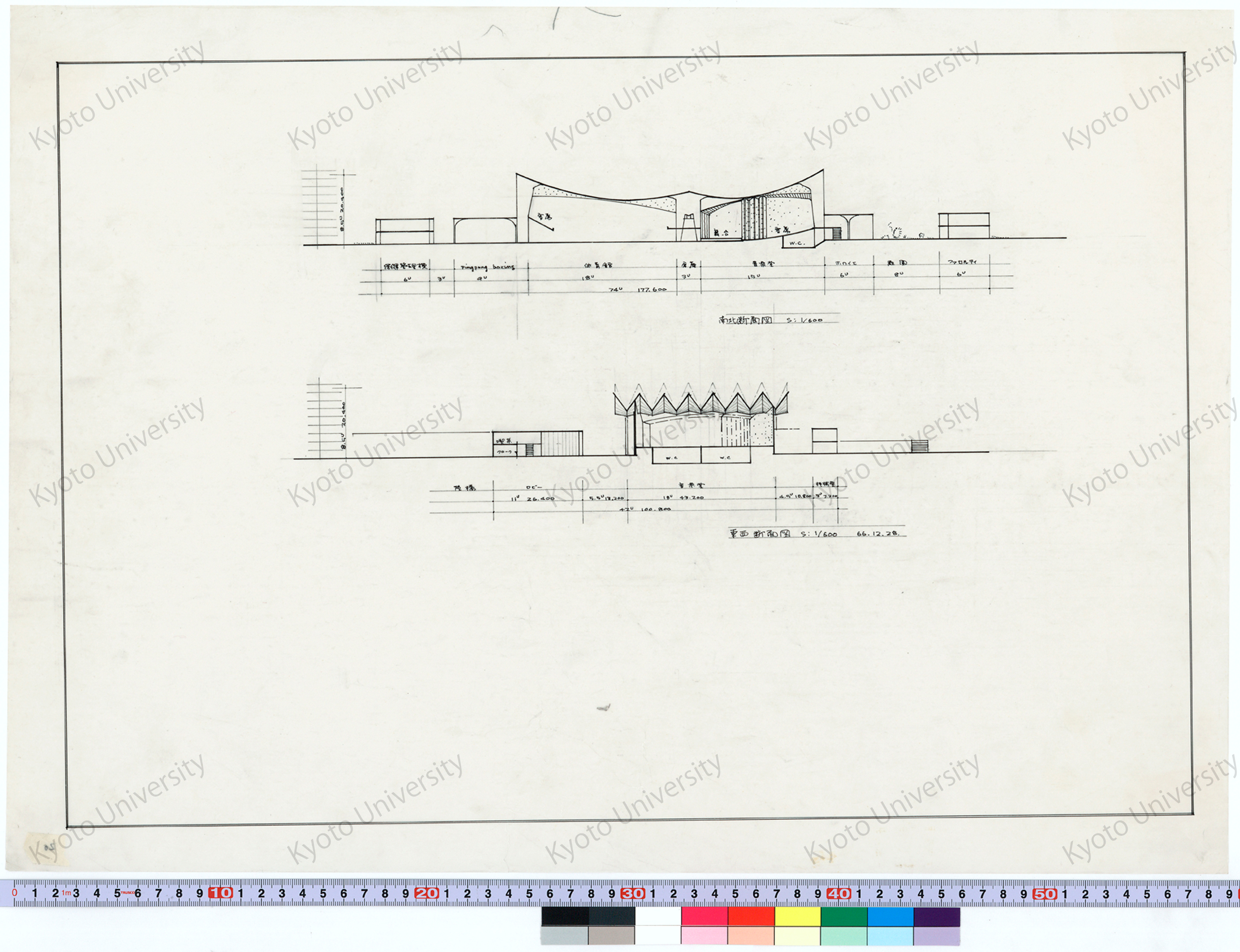 南北断面図_S=1/600_東西断面図_S=1/600_66.12.28, 1966-12-28