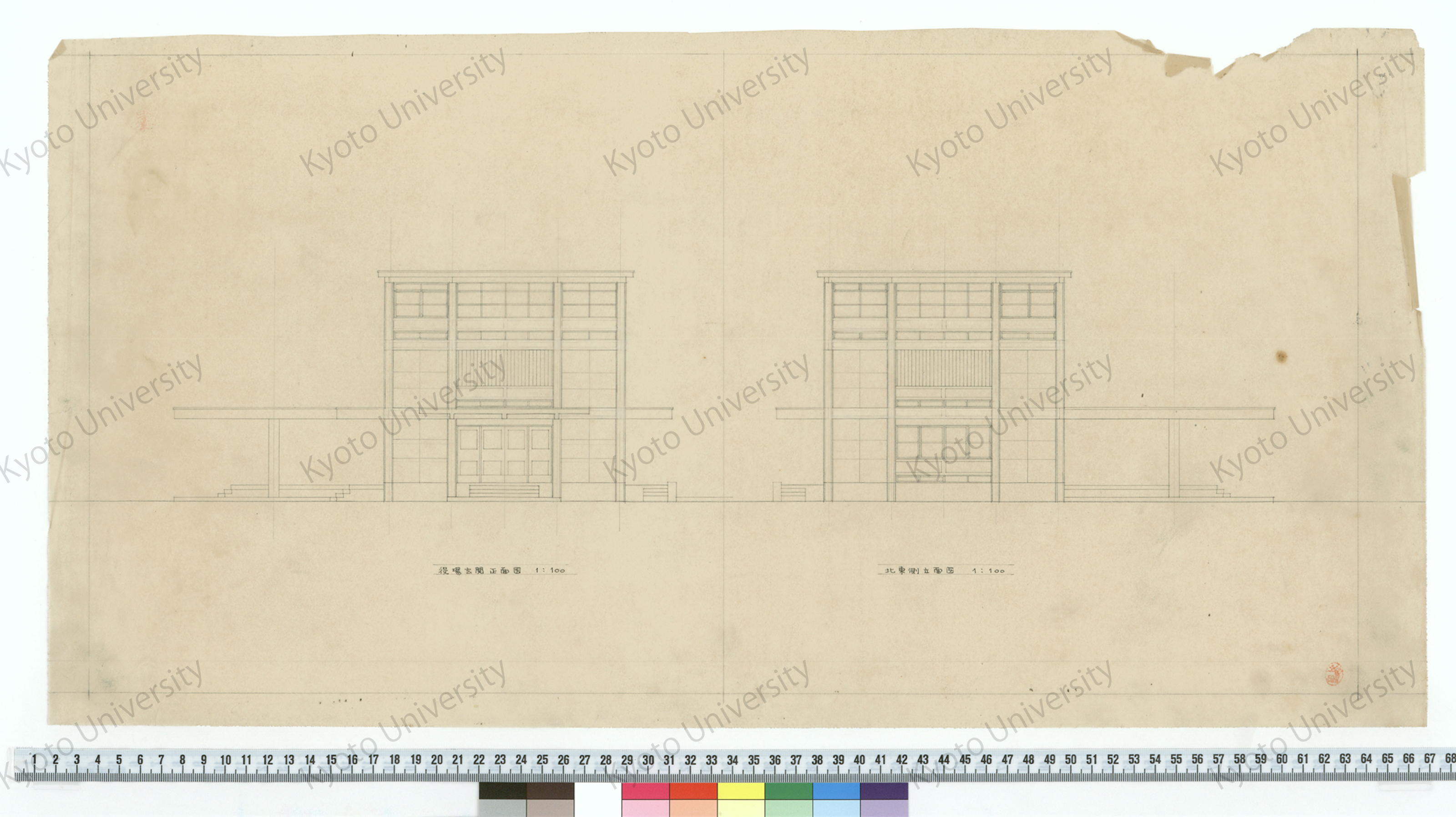 役場玄関正面図_1:100_北東側立面図_1:100_増田