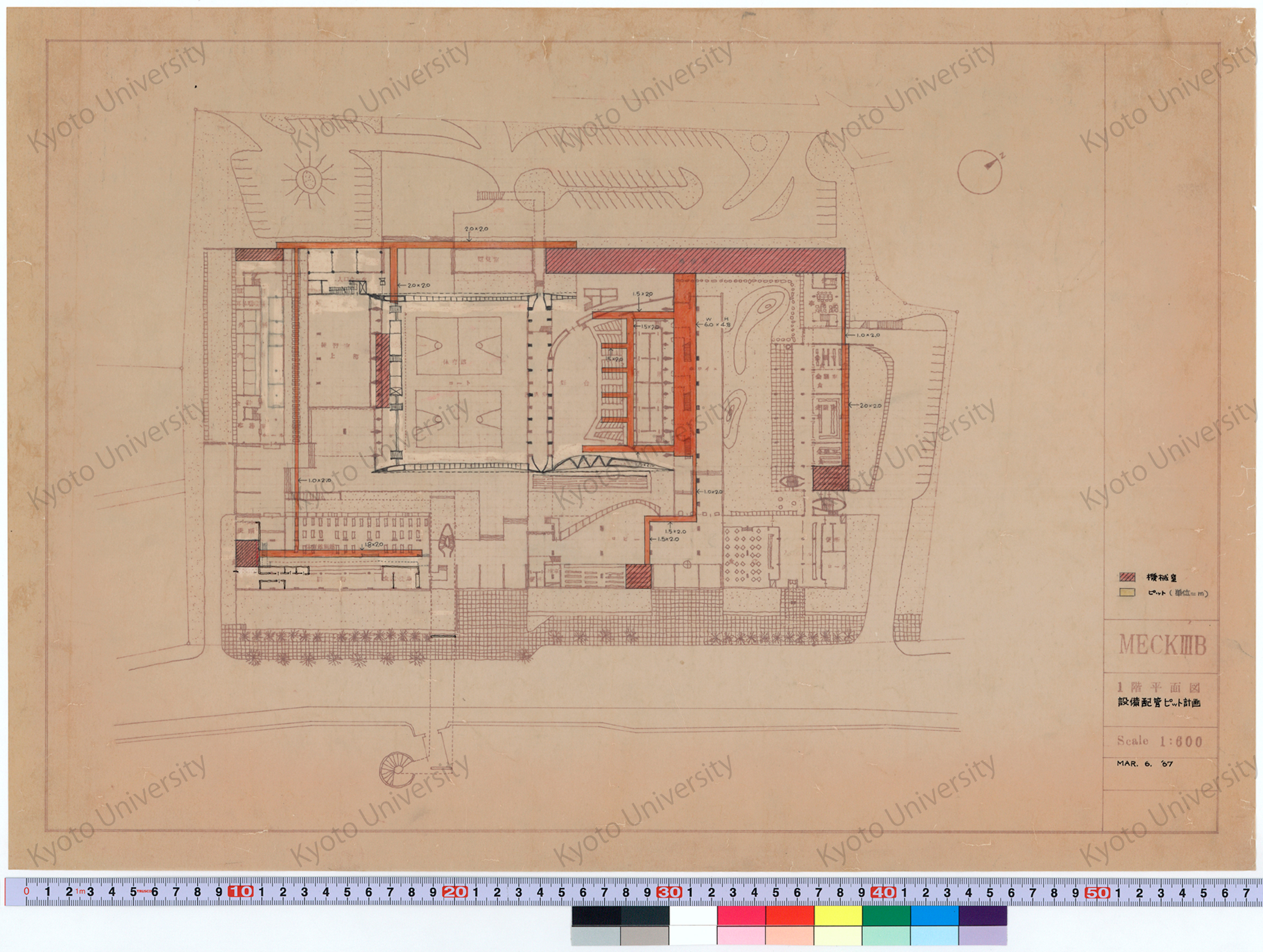 MECKIIIB_1階平面図 設備配管ピット計画_1:600_MAR. 6. ’67, 1967-03-06