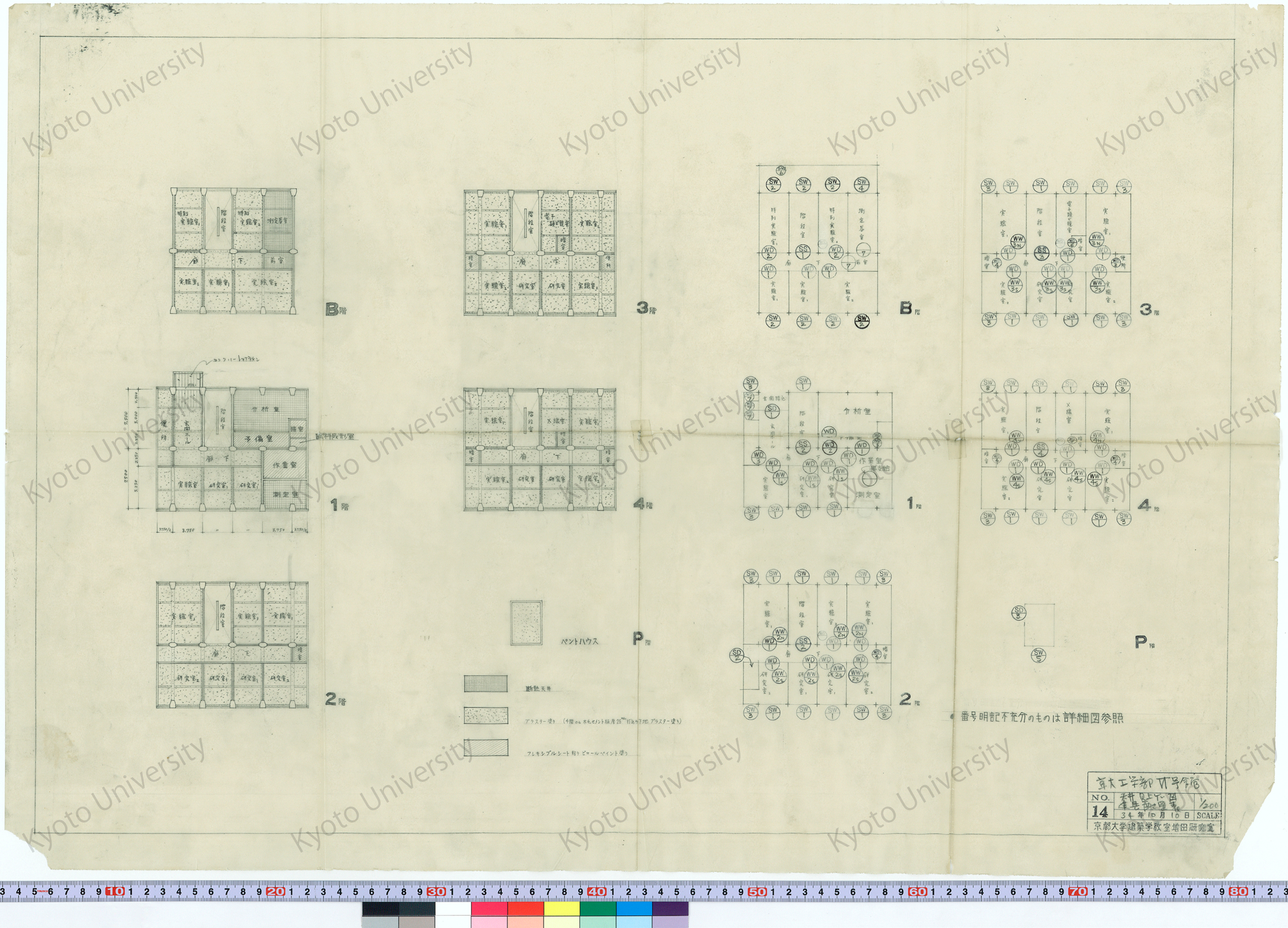 京都大学VI号館_天井見上ゲ図 建具配置表_1/200_14_34年10月10日, 1959-10-10