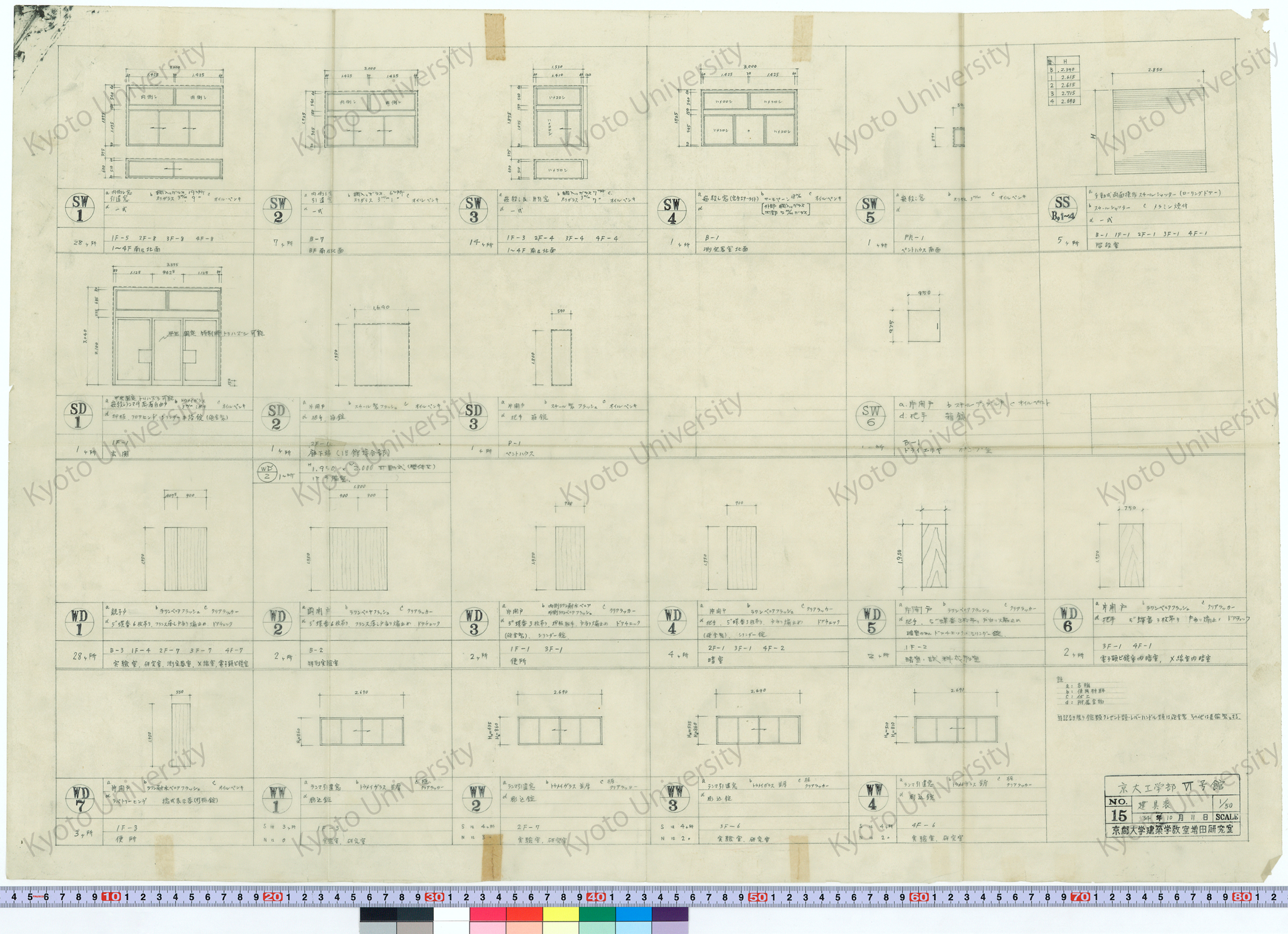 京都大学VI号館_建具表_1/50_15_34年10月11日, 1959-10-11