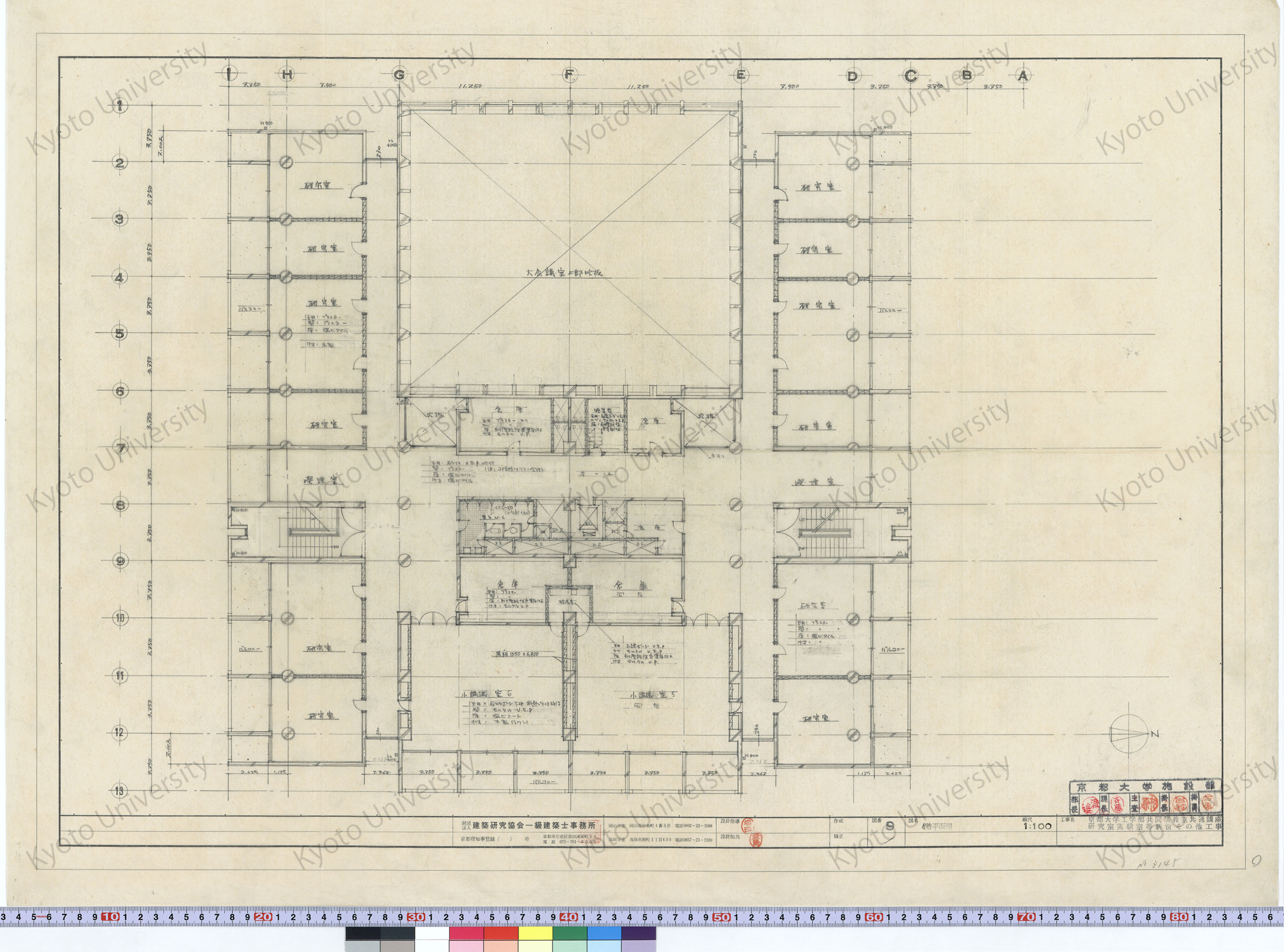 京都大学工学部共同講義室共通講座研究室実験室等新営その他工事_4階平面図_1:100_9_増田(設計指導), 豊島
