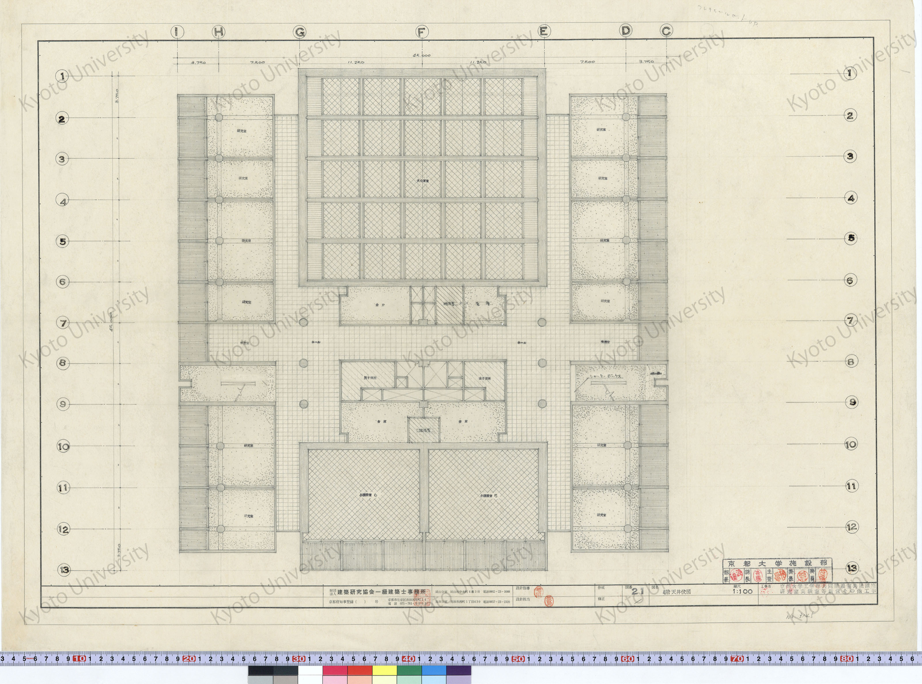京都大学工学部共同講義室共通講座研究室実験室等新営その他工事_4階天井伏図_1:100_21_増田(設計指導), 豊島