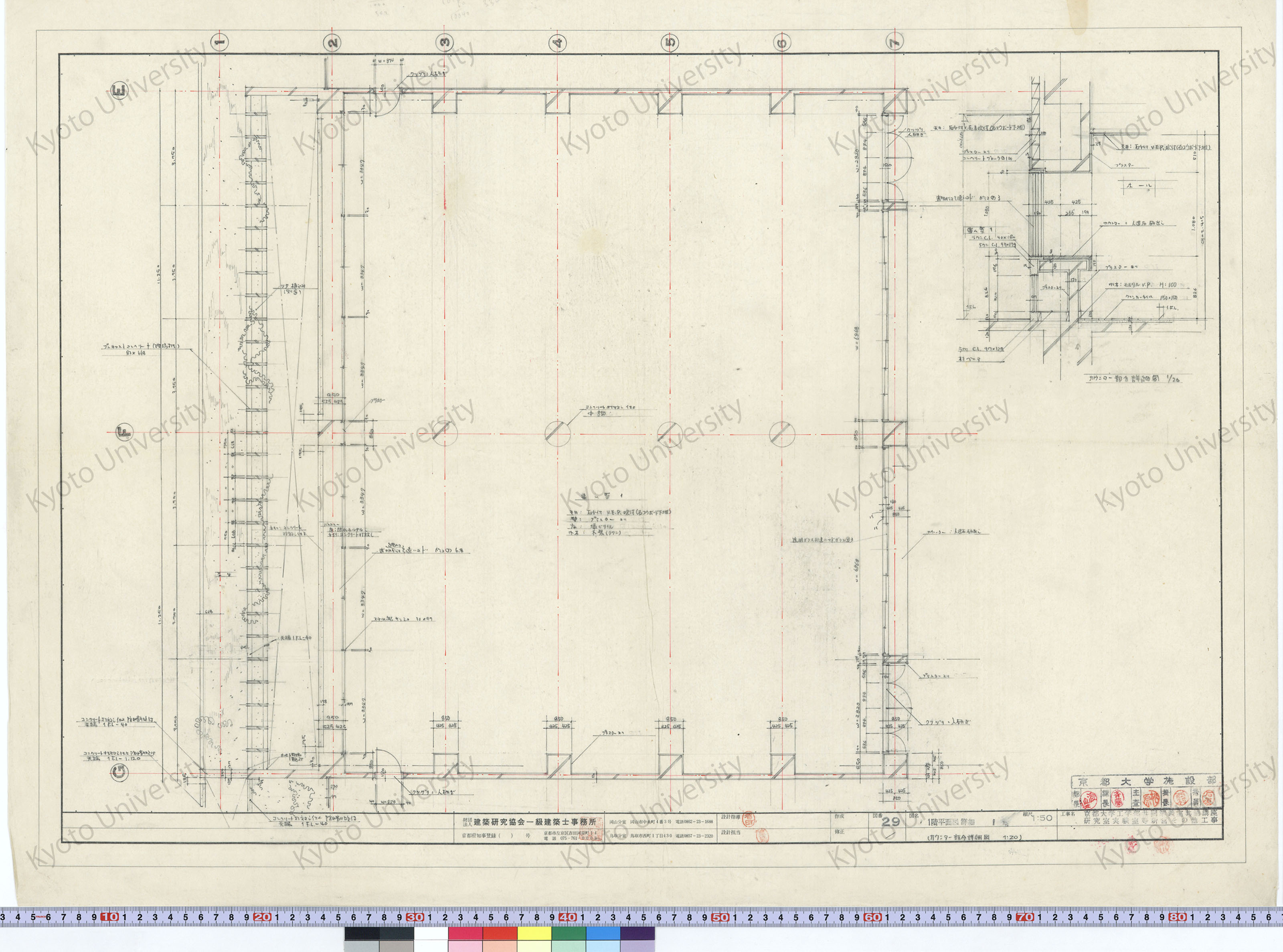 京都大学工学部共同講義室共通講座研究室実験室等新営その他工事_1階平面図詳細1(カウンター部分詳細図)_1:50, 1:20_29_増田(設計指導), 豊島
