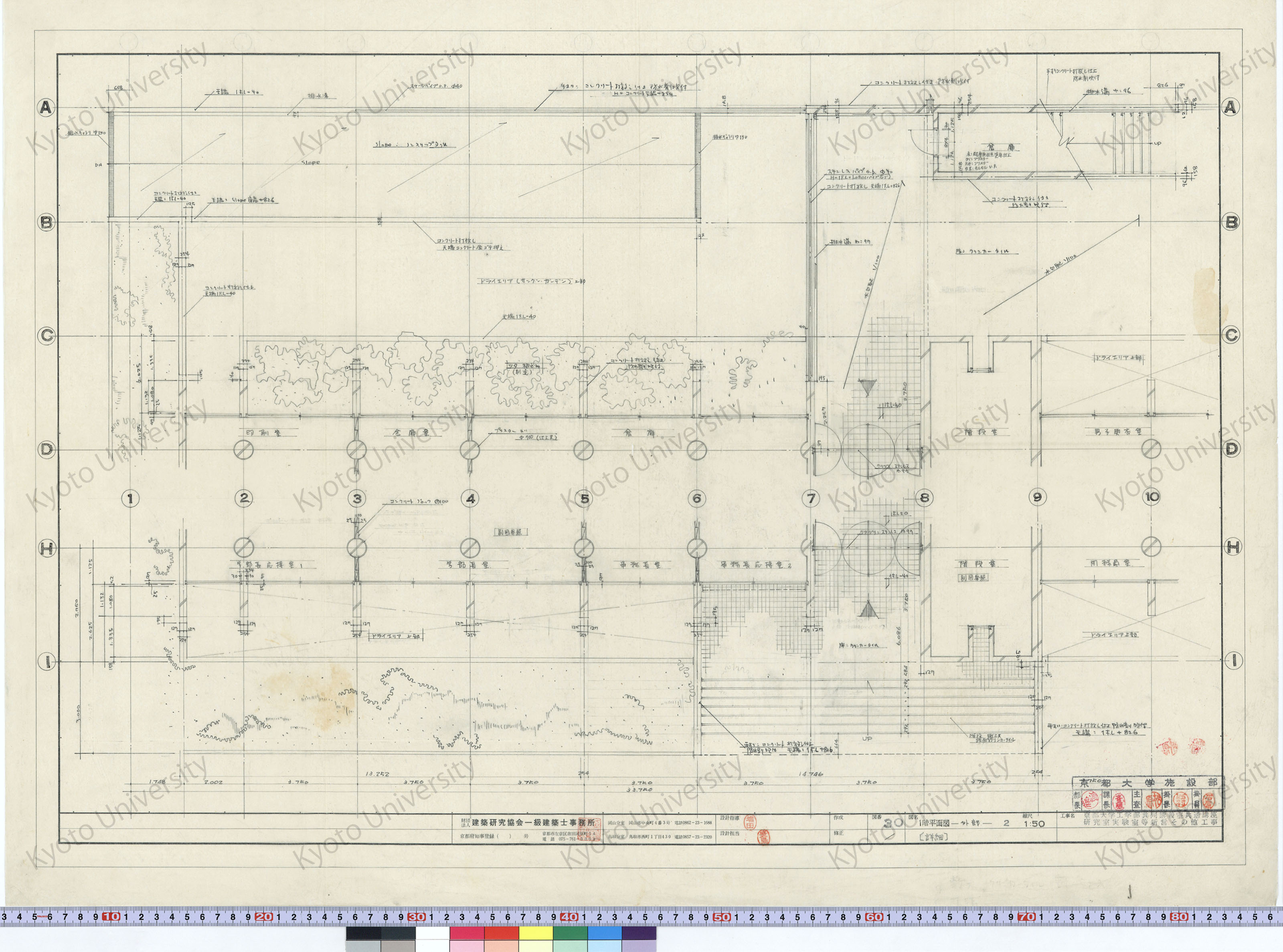 京都大学工学部共同講義室共通講座研究室実験室等新営その他工事_1階平面図-外部-2〔詳細〕_1:50_30_増田(設計指導), 豊島