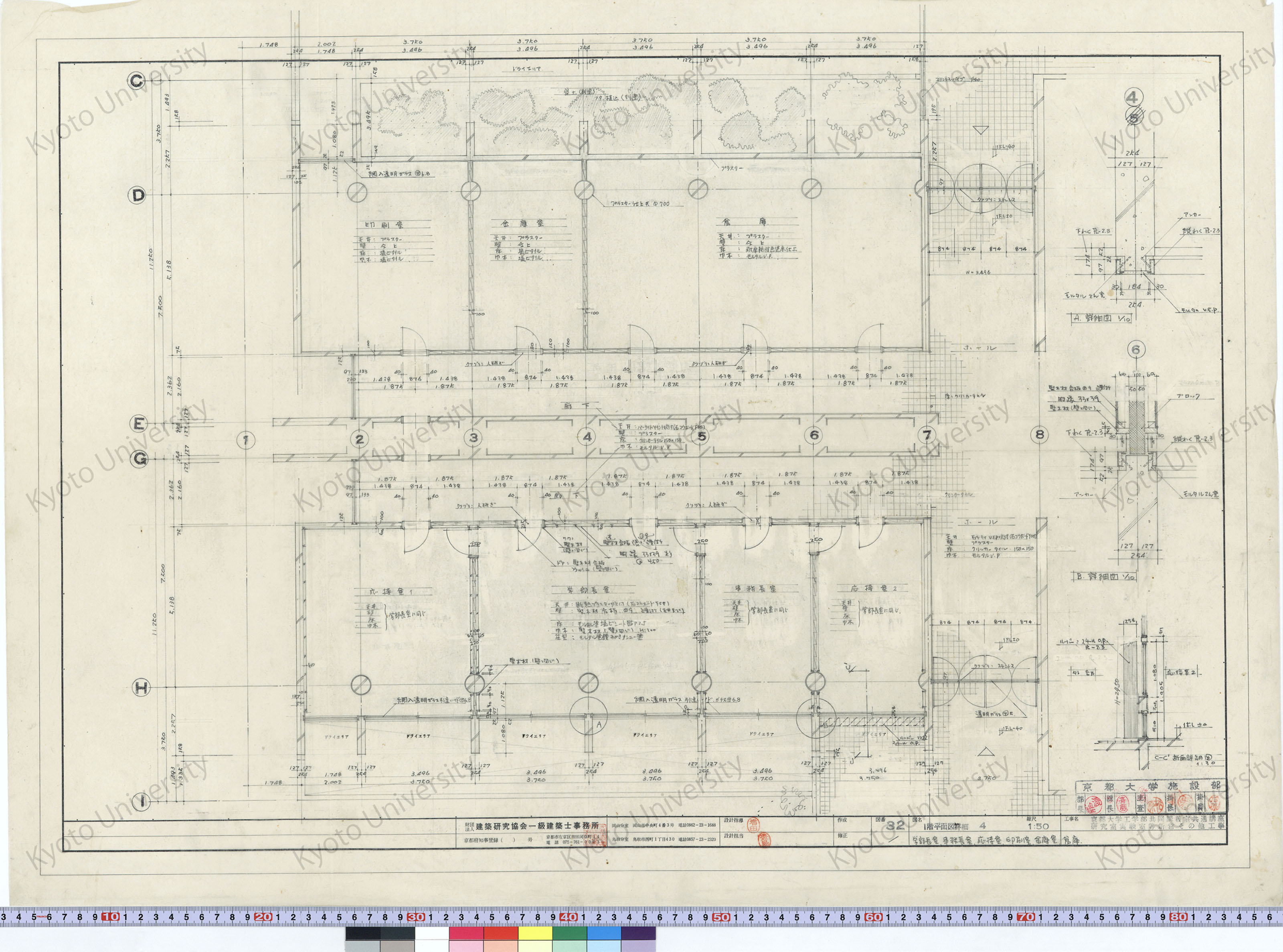 京都大学工学部共同講義室共通講座研究室実験室等新営その他工事_1階平面図詳細4 学部長室, 事務長室, 応接室, 印刷室, 金庫室, 倉庫_1:50_32_増田(設計指導), 豊島 (1)