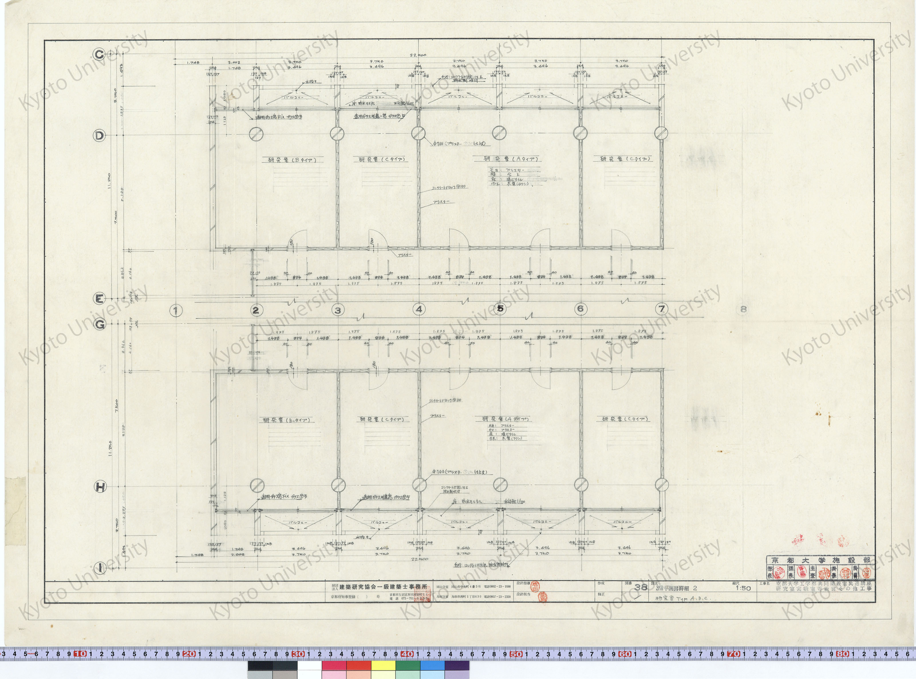 京都大学工学部共同講義室共通講座研究室実験室等新営その他工事_2階平面図詳細2 研究室Type A・B・C_1:50_34_増田(設計指導), 豊島