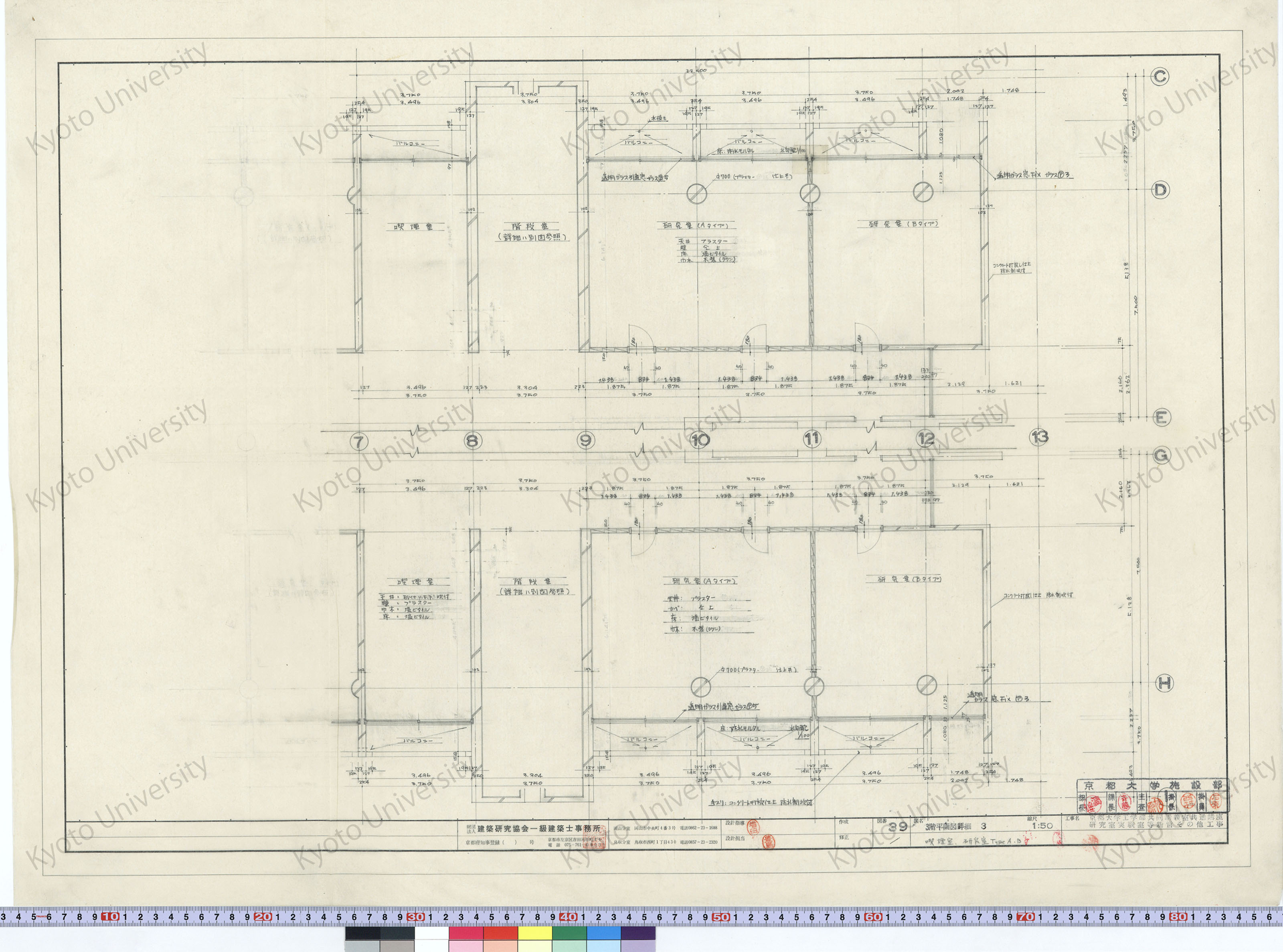 京都大学工学部共同講義室共通講座研究室実験室等新営その他工事_3階平面図詳細2 研究室Type A・B・C_1:50_38_増田(設計指導), 豊島