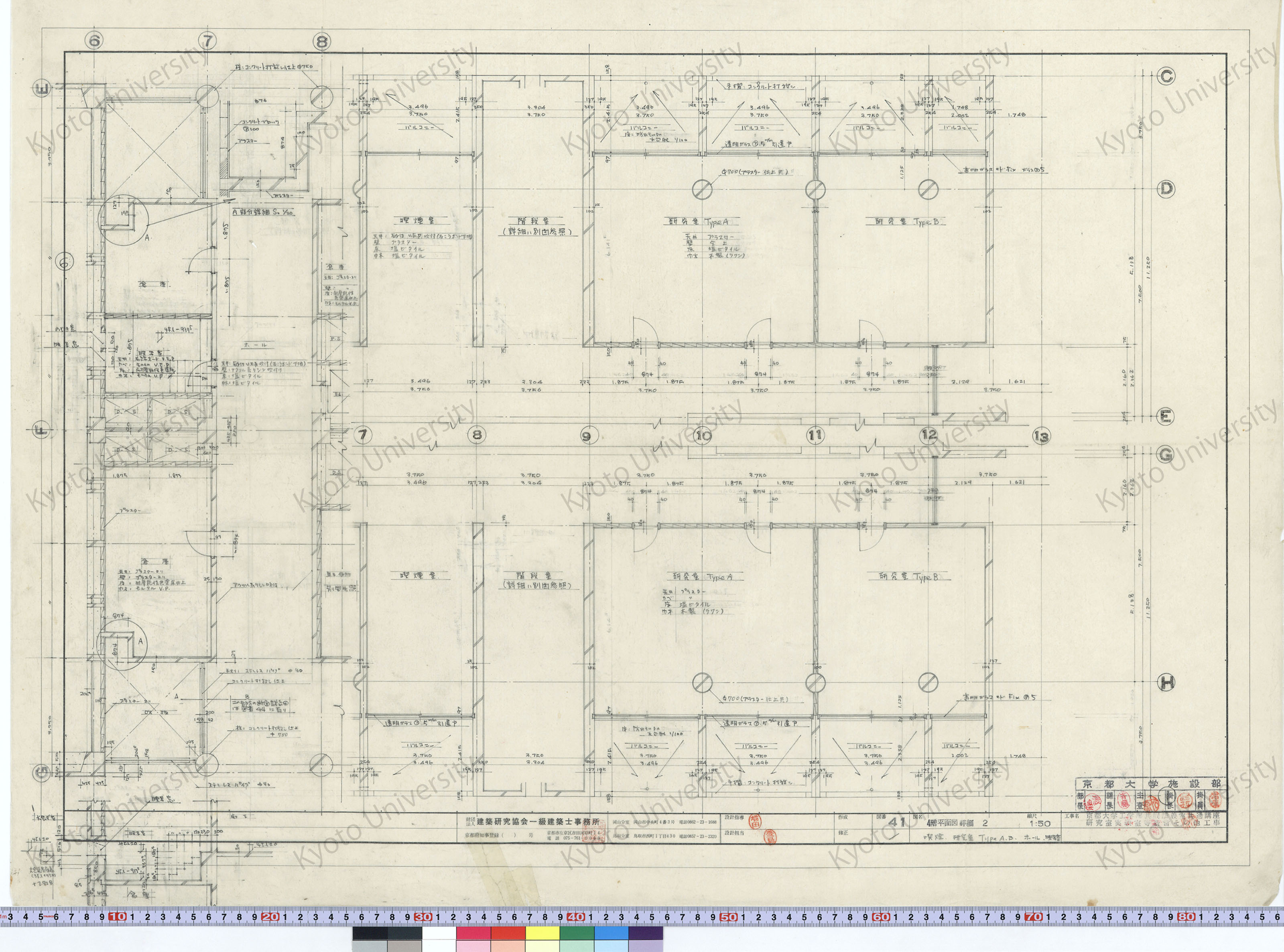 京都大学工学部共同講義室共通講座研究室実験室等新営その他工事_4階平面図詳細2 喫煙 研究室Type A・B ホール 映写室_1:50_41_増田(設計指導), 豊島