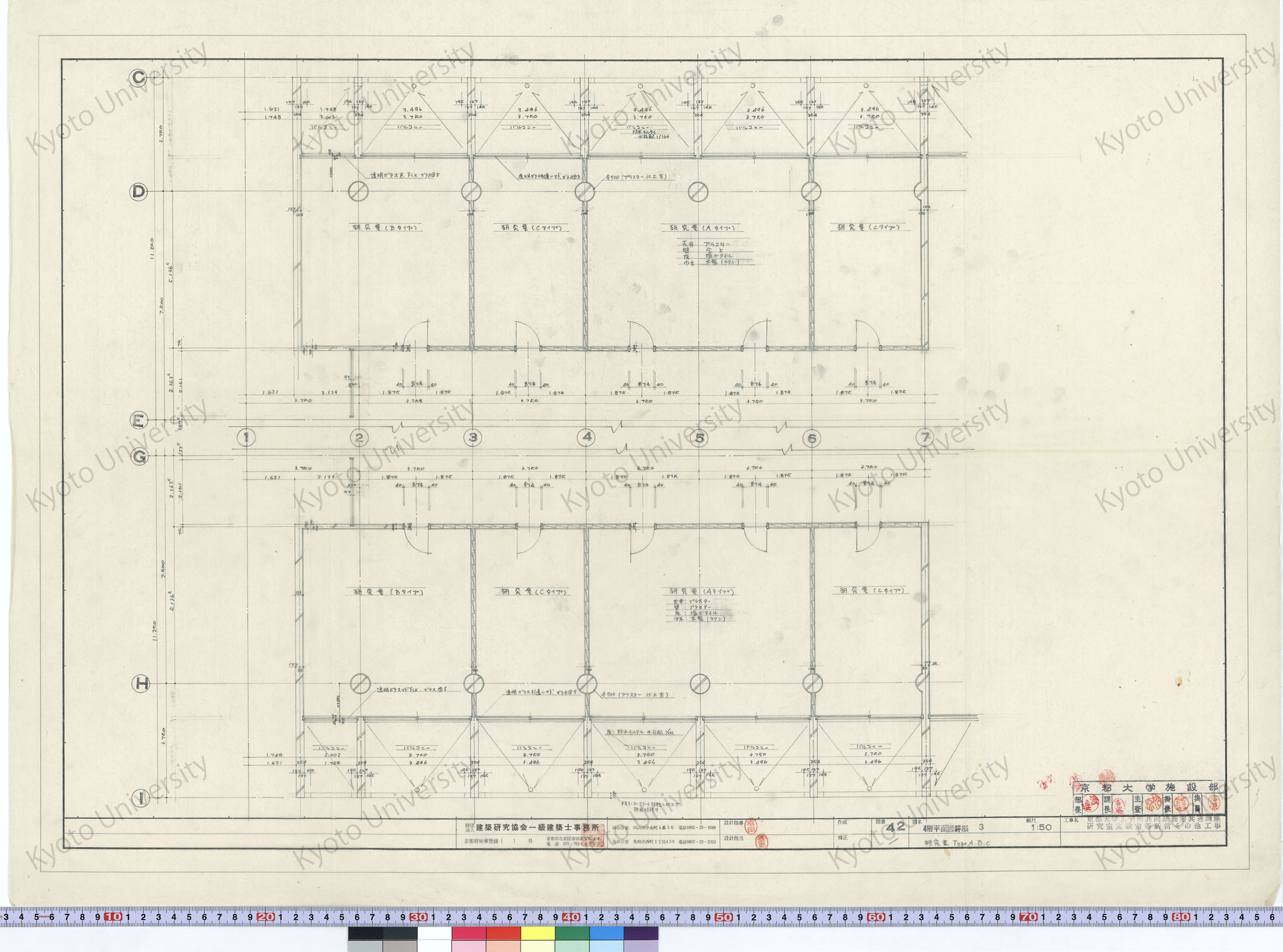 京都大学工学部共同講義室共通講座研究室実験室等新営その他工事_4階平面図詳細3 研究室Type A・B・C_1:50_42_増田(設計指導), 豊島
