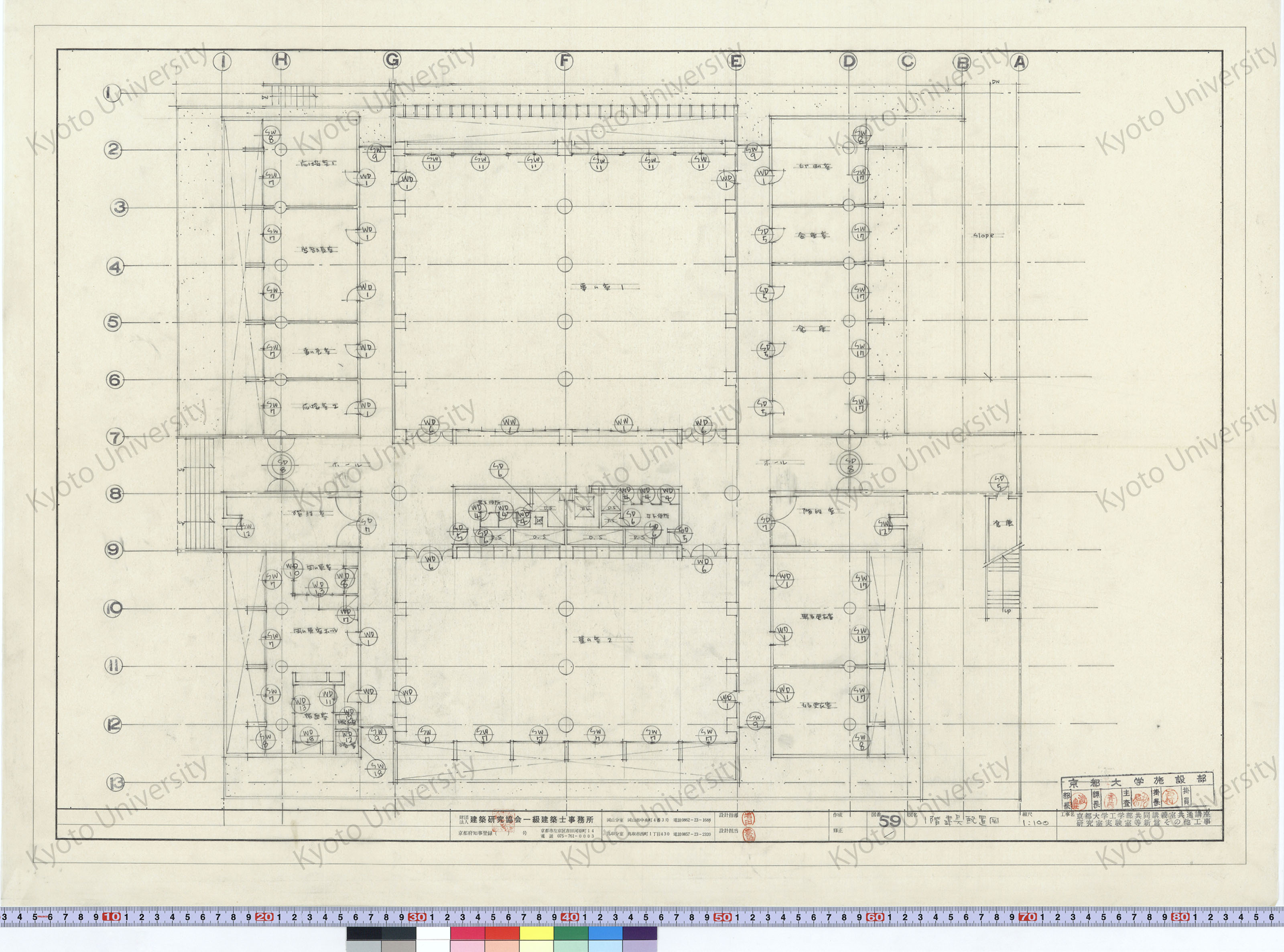京都大学工学部共同講義室共通講座研究室実験室等新営その他工事_1階建具配置図_1:100_59_増田(設計指導), 豊島