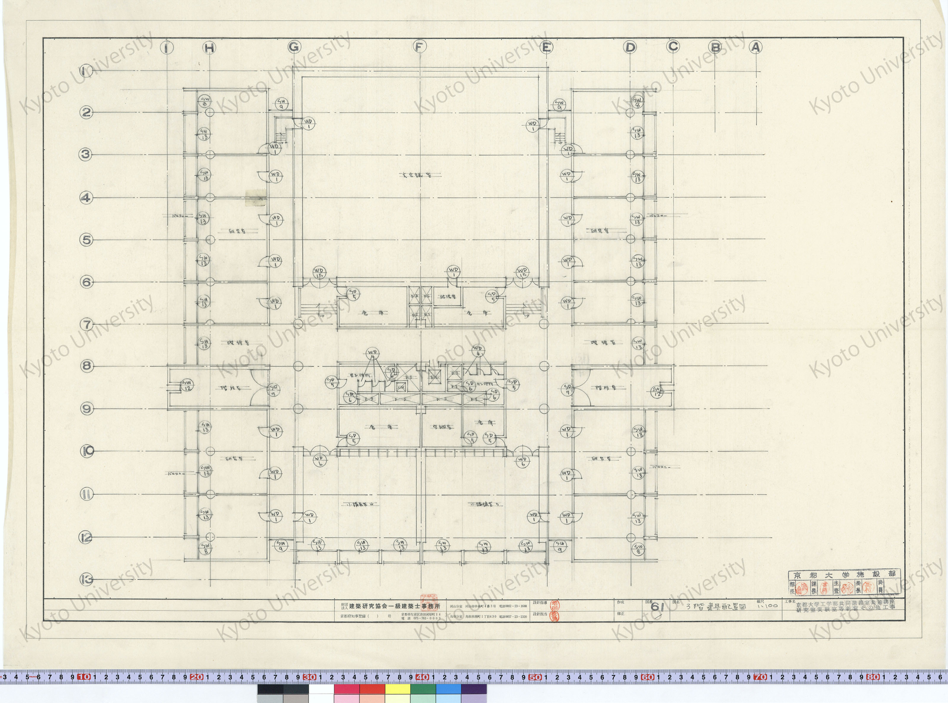 京都大学工学部共同講義室共通講座研究室実験室等新営その他工事_3階建具配置図_1:100_61_増田(設計指導), 豊島