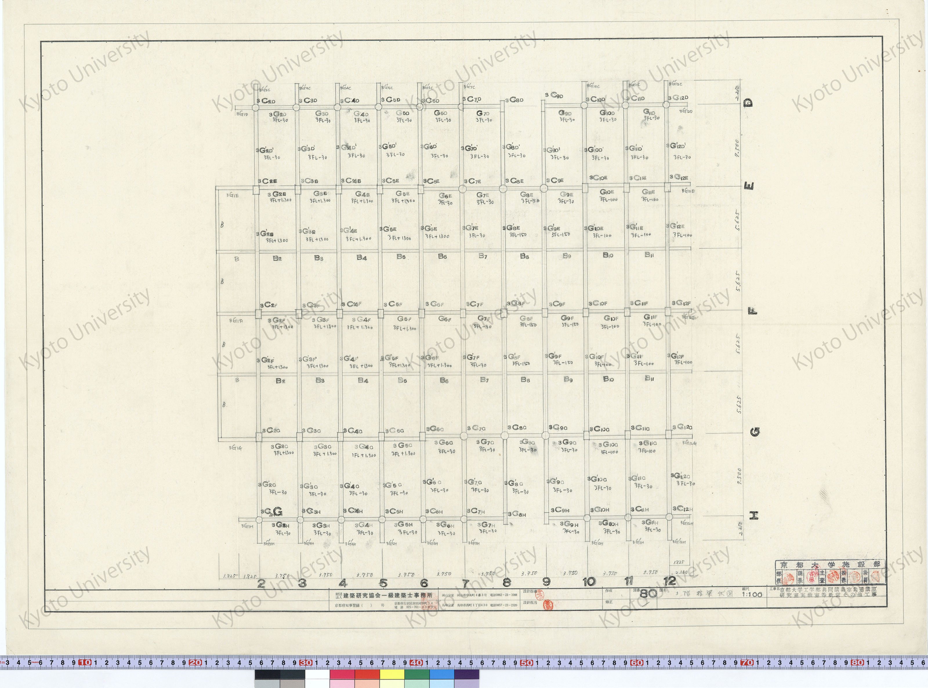 京都大学工学部共同講義室共通講座研究室実験室等新営その他工事_3階柱梁伏図_1:100_80_増田(設計指導), 豊島