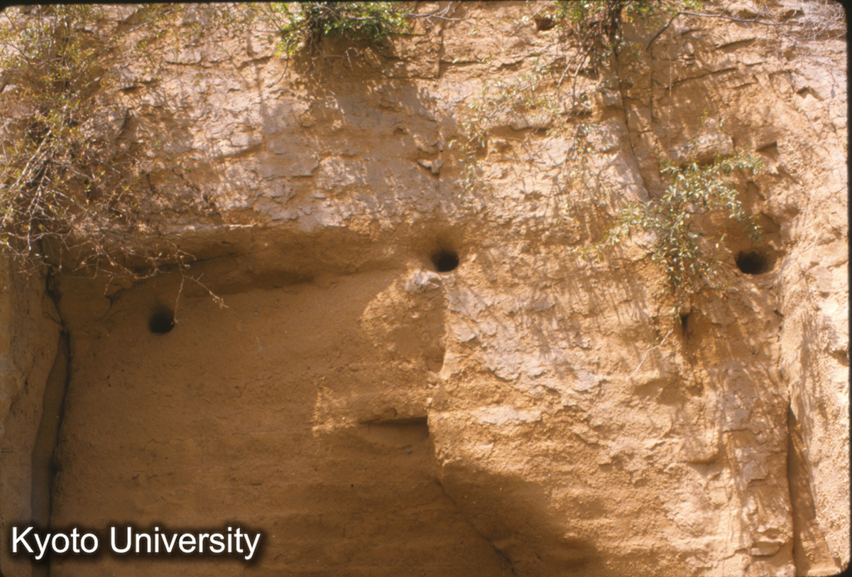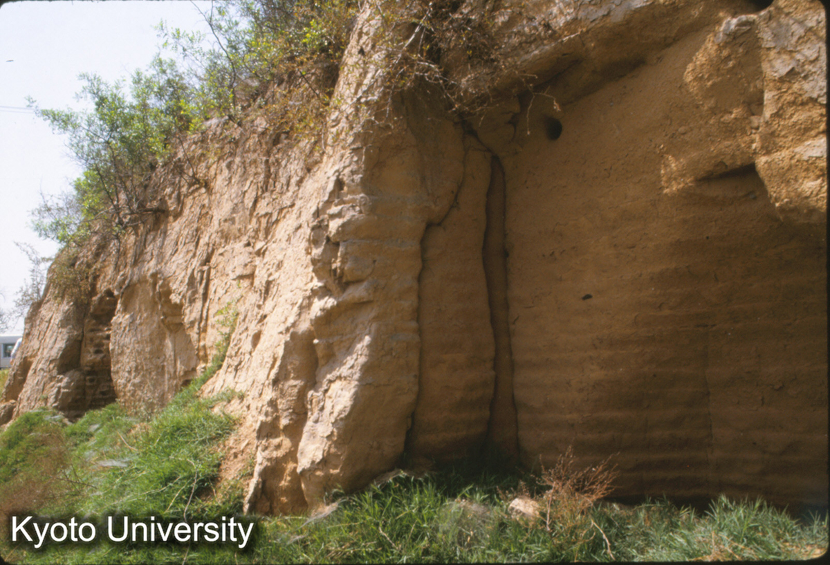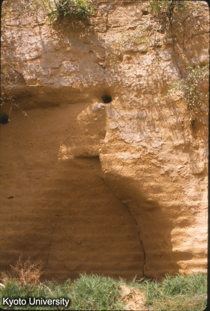 1381_漢長安城南墻 夯土層詳細 "絍木"孔φ8-9cm,ピッチ1.00m-1.03_87_◎ (1)