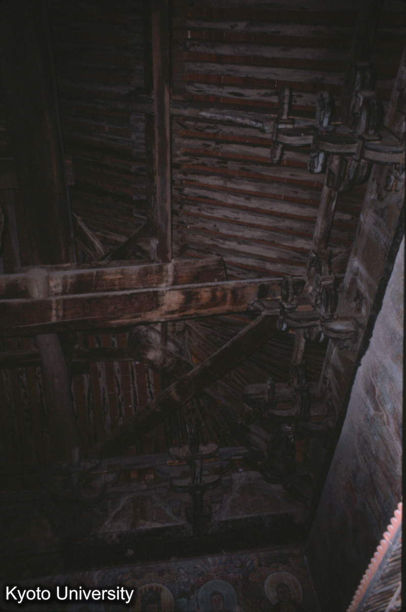 43-13_洪洞 広勝上寺後殿(毘盧殿) 梁架-大昂(斜梁)明・弘治10(1497)_81, 1981