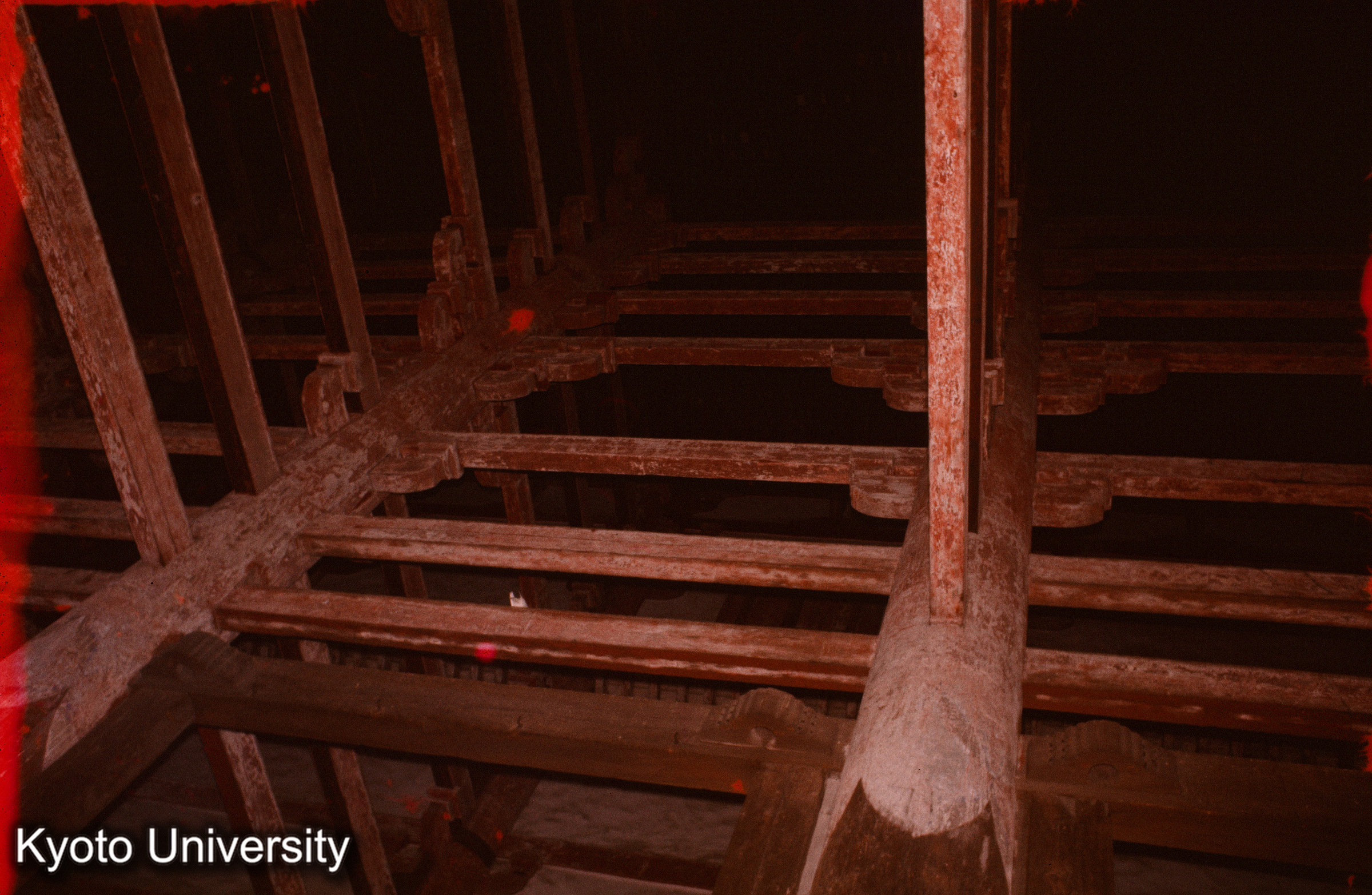 東大寺法華堂 礼堂 造り合い取合隅見上げ (1)