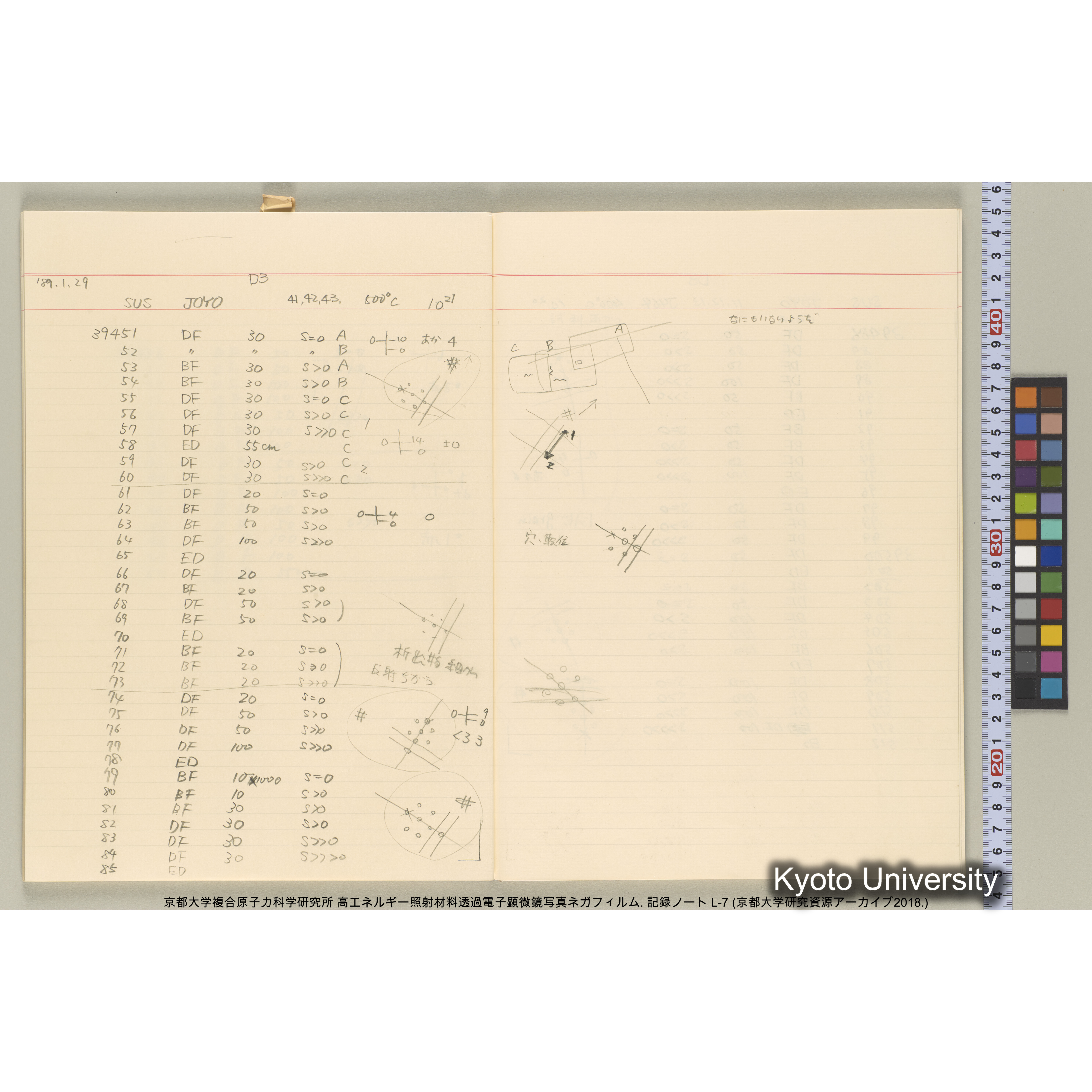 [記録ノート, Lシリーズ] 大洗実験 L-7. 38514~40645., [1989/1/28〜3/17.] [ノート内記載「89 1/28」,「(1989)3/17〜」より.], [1989-01-28/1989-03-17.]