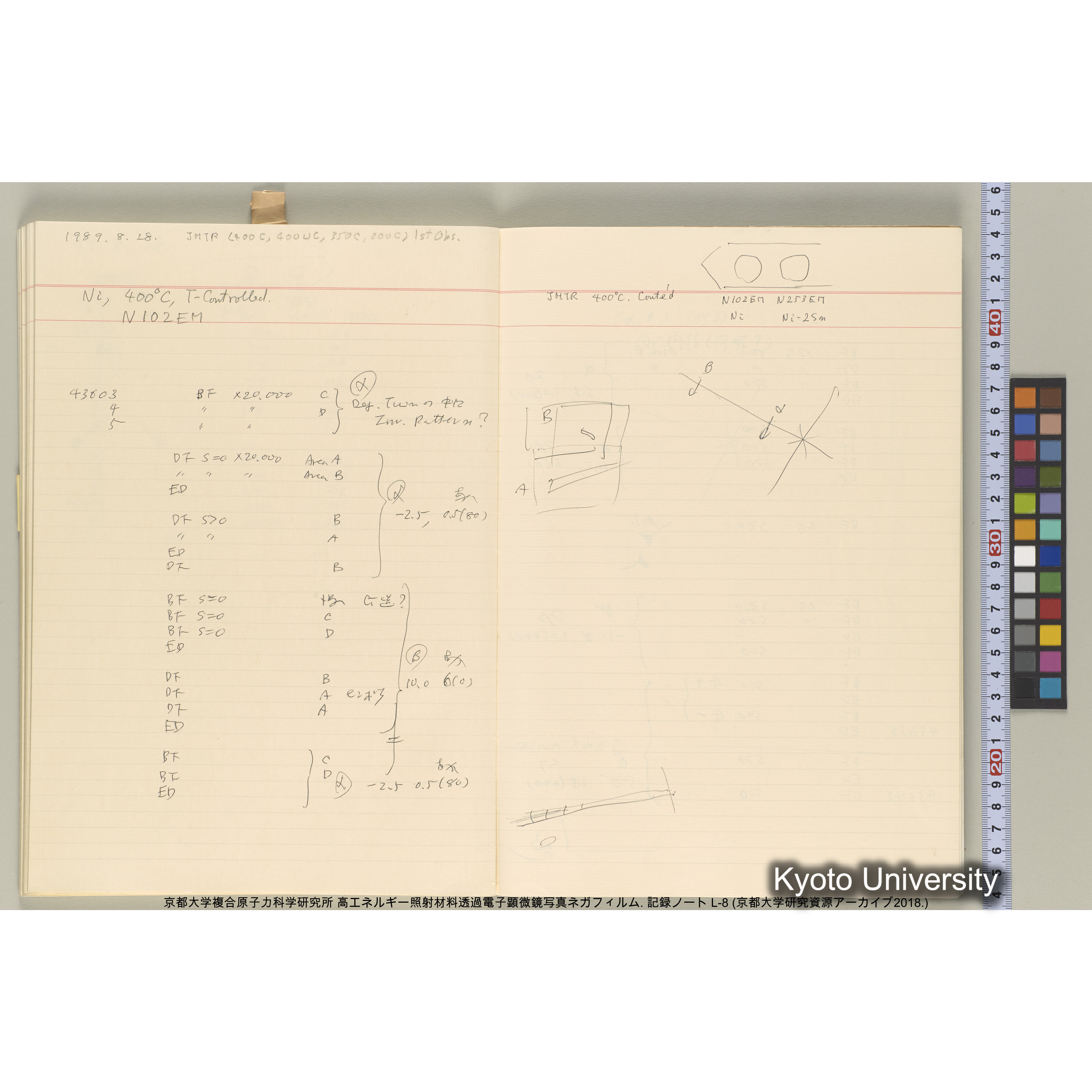 [記録ノート, Lシリーズ] 大洗実験 L-8. 40645~40645., [1989(平成元).6.15〜8.28.] [ノート内記載「平成元 6.15」,「1989.8.28」より.], [1989-06-15/1989-08-28.]