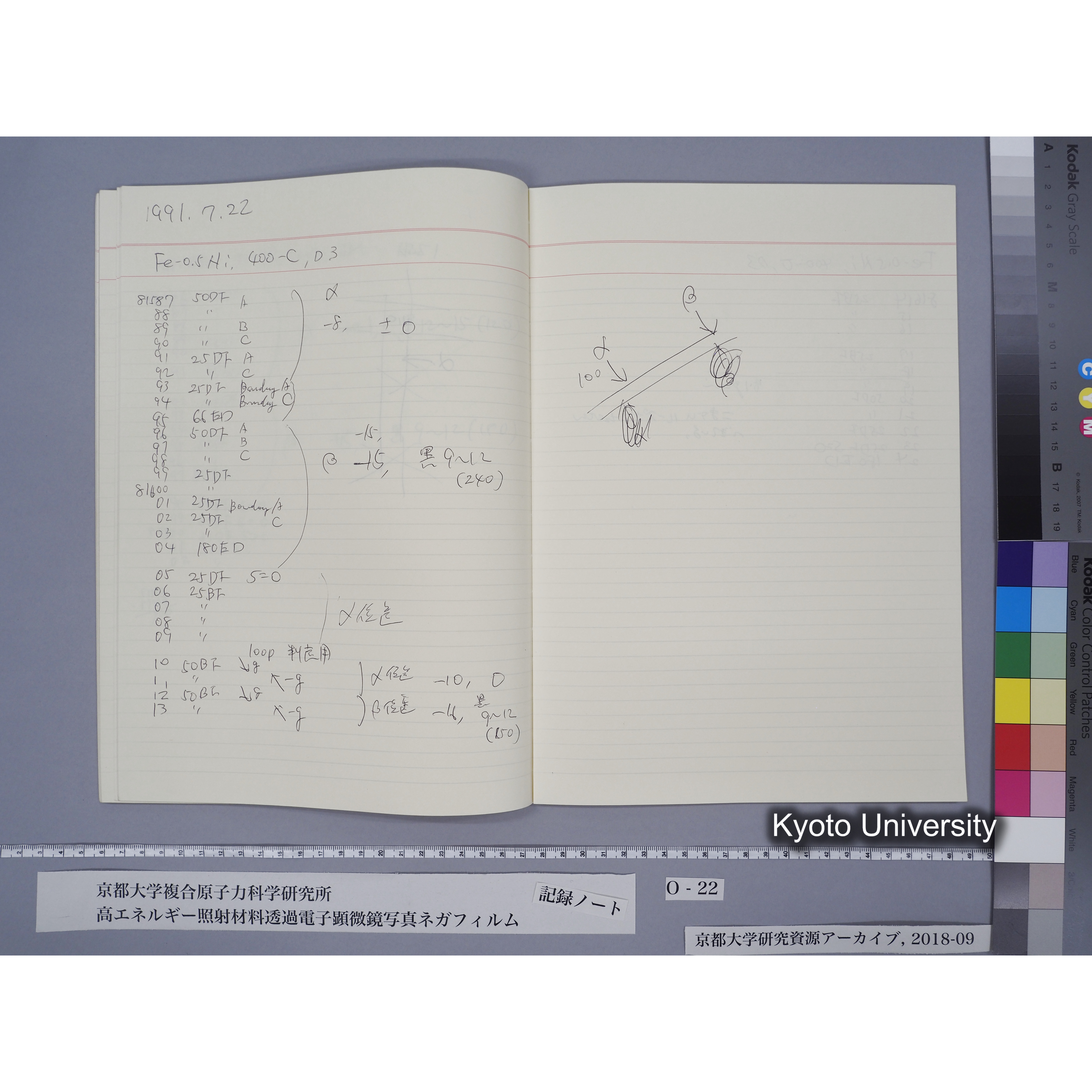 [記録ノート, Oシリーズ] O-22 平成3年2月6日→., 平成3年2月6日→[平成3年(1991)7月22日]. [表紙記載, ノート内記載終了日付「1991.7.22」より.], [1991-02-06/1991-07-22.]