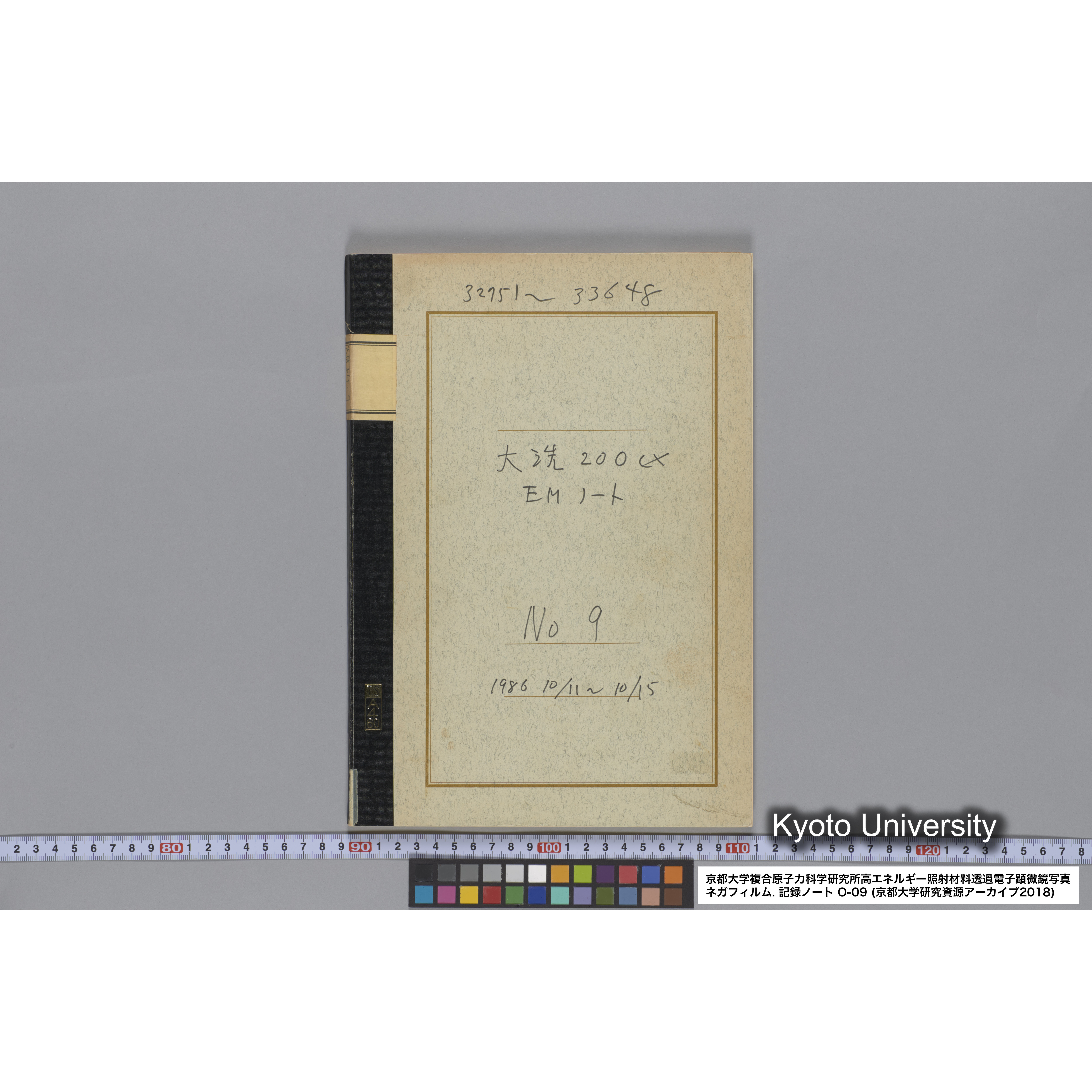 [記録ノート, Oシリーズ] 大洗 200CX EMノート No 9 1986 10/11〜10/15. 32751〜33648., 1986 10/11〜10/15. [表紙記載より.], [1986-10-11/1986-10-15.]