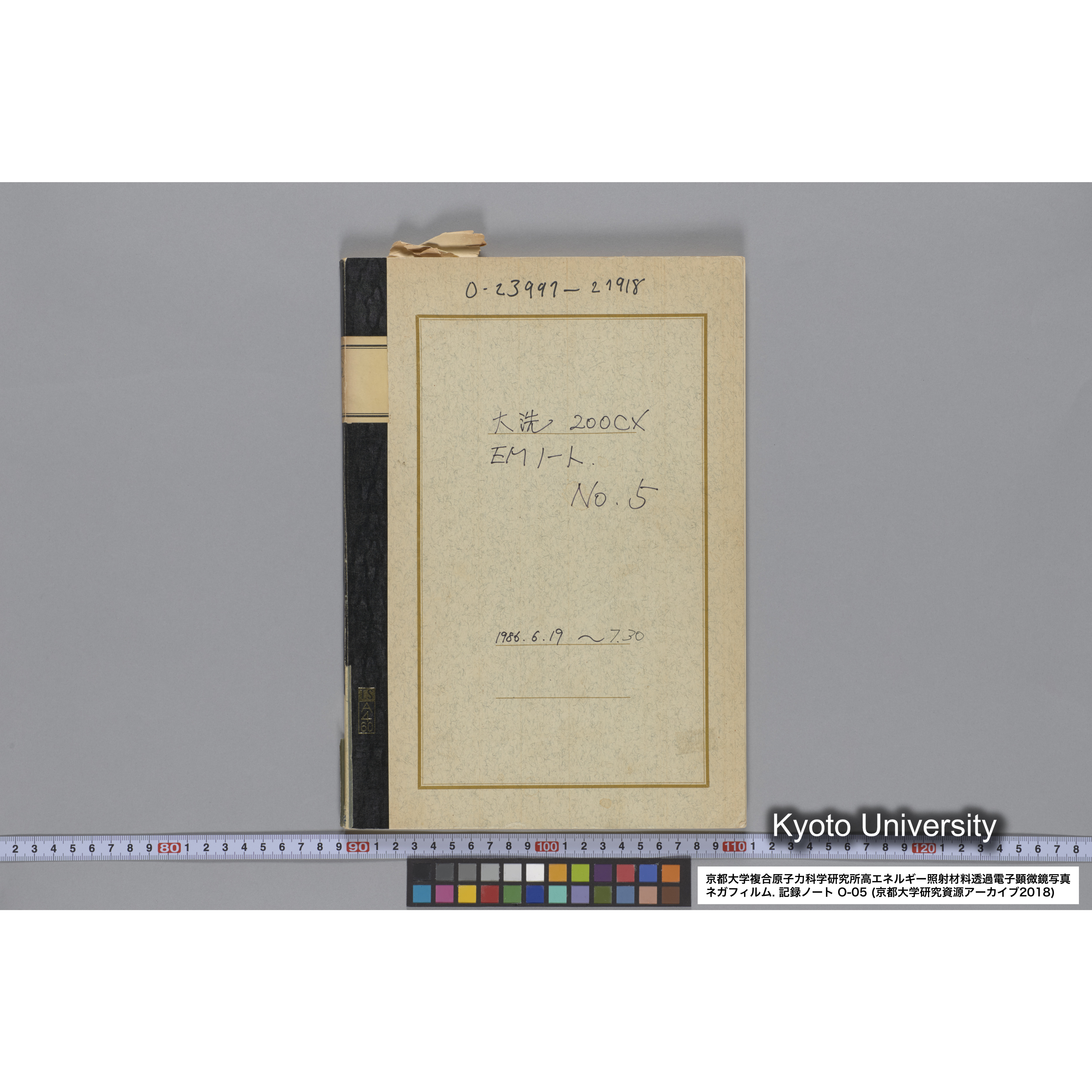 [記録ノート, Oシリーズ] 大洗 200CX EMノート No.5 1986.6.19〜7.30. O-23997 - 27918., 1986.6.19〜7.30. [表紙記載より.], [1986-06-19/1986-07-30.]