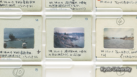 本資料群にはおもに二つの記録写真が含まれる。第一に、1959(昭和34)年に京都大学名誉教授(当時、京都大学防災研究所助教授)の岩垣雄一(1923-2009)が、伊勢湾台風による高潮被害を撮影した記録写真(35mmポジフィルム)、第二に、2010年に同場所を京都大学防災研究所教授の間瀬肇(1953-)が撮影した記録写真(JPGデータ)である。そのほか、岩垣により作成された1959年の調査時のフィールドノートや地図、調査後の講演会で使用されたスライドと図表(35mmネガフィルム、紙焼き写真)も含まれる。This collection mainly includes two collections of photographs. The first is photographic record (35mm positive films) of damage from storm surge caused by Isewan Typhoon (Typhoon Vera), taken in 1959, by Professor Emeritus Yuichi...